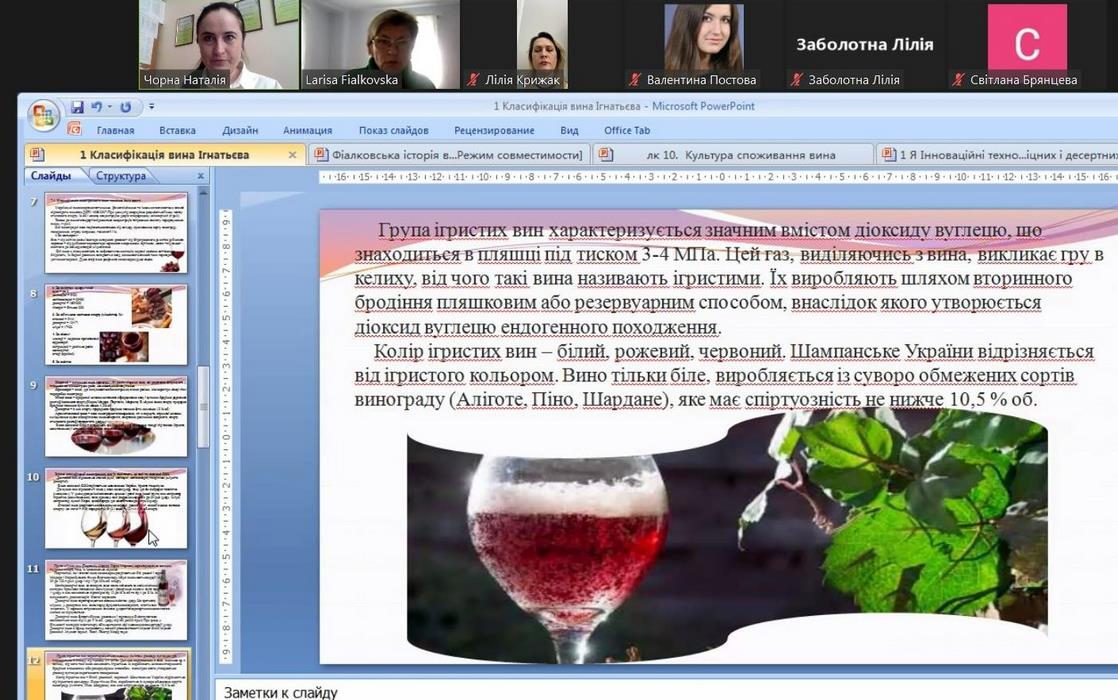 - Ігнатьєва Катерина (гр. ХТ-41 д) – з доповіддю на тему «Класифікація вин, їх подача та дегустація»;