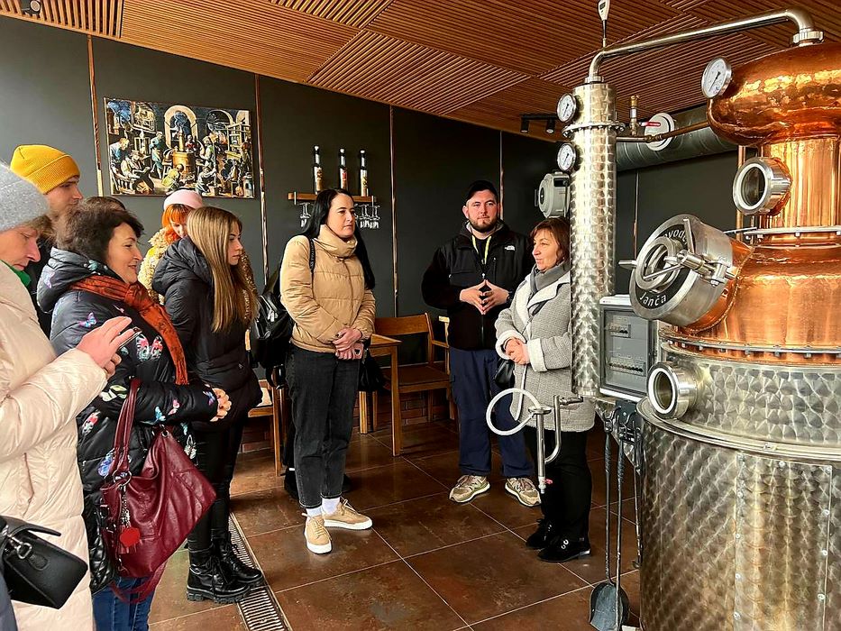 На підприємстві учасники поїздки ознайомилися з технологіями виробництва вина, високотехнологічним обладнанням для виробництва вина, особливостями організації та проведення дегустації вина. Присутні на заході мали можливість також дізнатися історію започаткування та розвитку підприємства, спуститися до винного льоху та побачити, як у великих діжках дозріває вино, а також ознайомитися з асортиментом вин, які тут виробляються та спроможні задовольнити навіть найвибагливішого споживача.