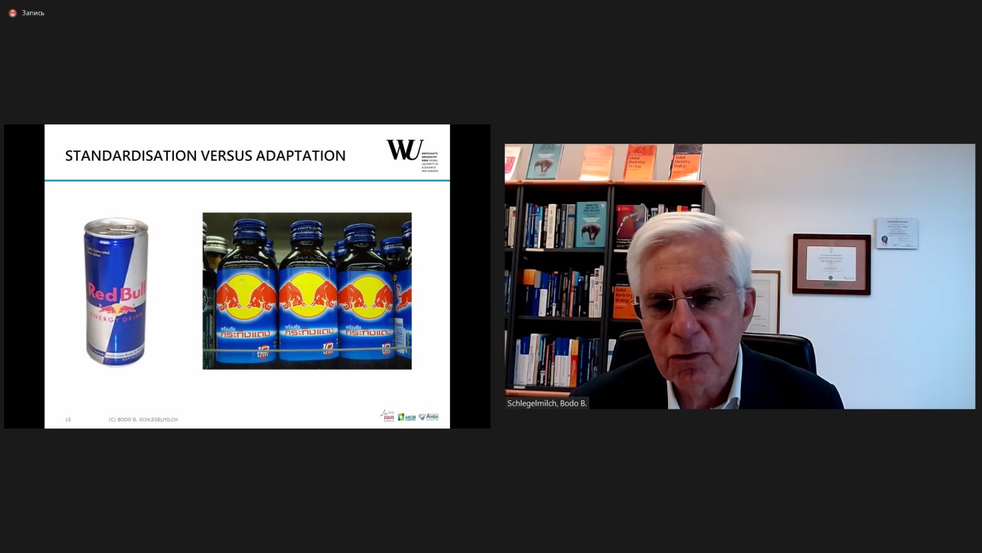 Онлайн-лекція була проведена професором Бодо Шлегельмільхом, який очолює Інститут управління міжнародним маркетингом Віденського Університету (WU Vienna) та є головою ради директорів міжнародних асоціацій бізнес-освіти AMBA та BGA.