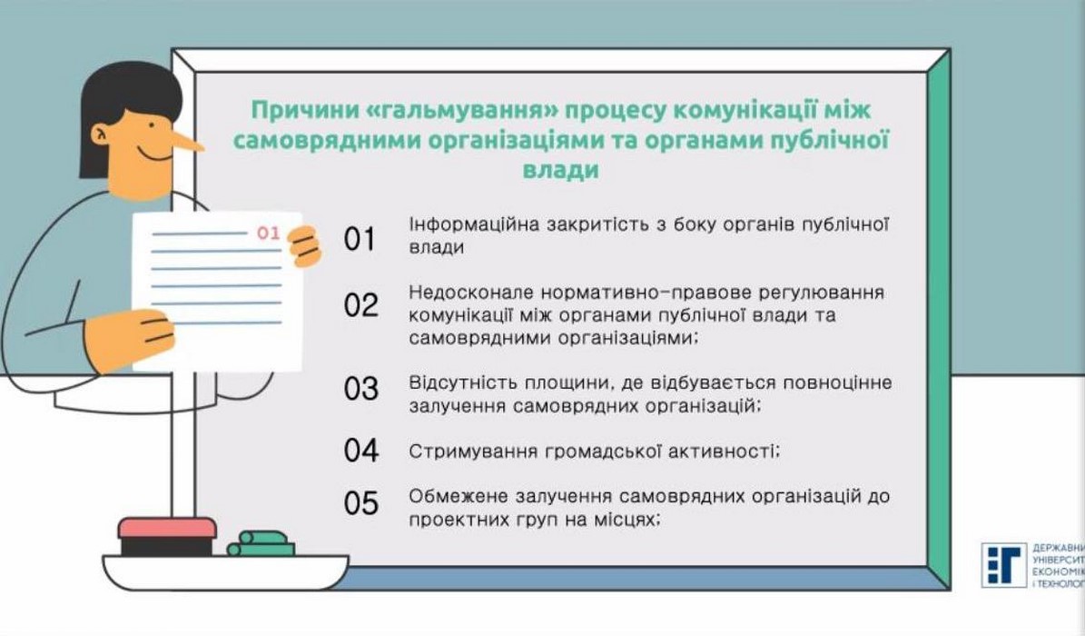 Аліна Кузьмич, в.о. директора Навчально-наукового юридичного інституту, асистент кафедри права і публічного управління та адміністрування Державного університету економіки і технологій (м. Кривий Ріг) – «Проблеми співпраці самоврядних організацій та органів публічної влади в післявоєнному відновленні України».