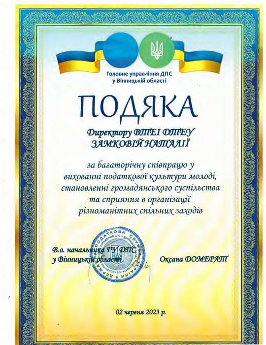 2 червня 2023 року у Вінницькому торговельно-економічному інституті ДТЕУ на базі Головного управління Державної податкової служби у Вінницькій області відбувся Всеукраїнський конкурс студентських наукових робіт «Фінанси, облік та оподаткування: сучасні тренди та виклики», метою якого є стимулювання участі здобувачів вищої освіти у дослідженні актуальних питань розвитку податкової системи, удосконалення податкової та фінансової політики, а також стратегічних напрямів розвитку обліку, аналізу та аудиту у світлі сучасних економічних викликів.