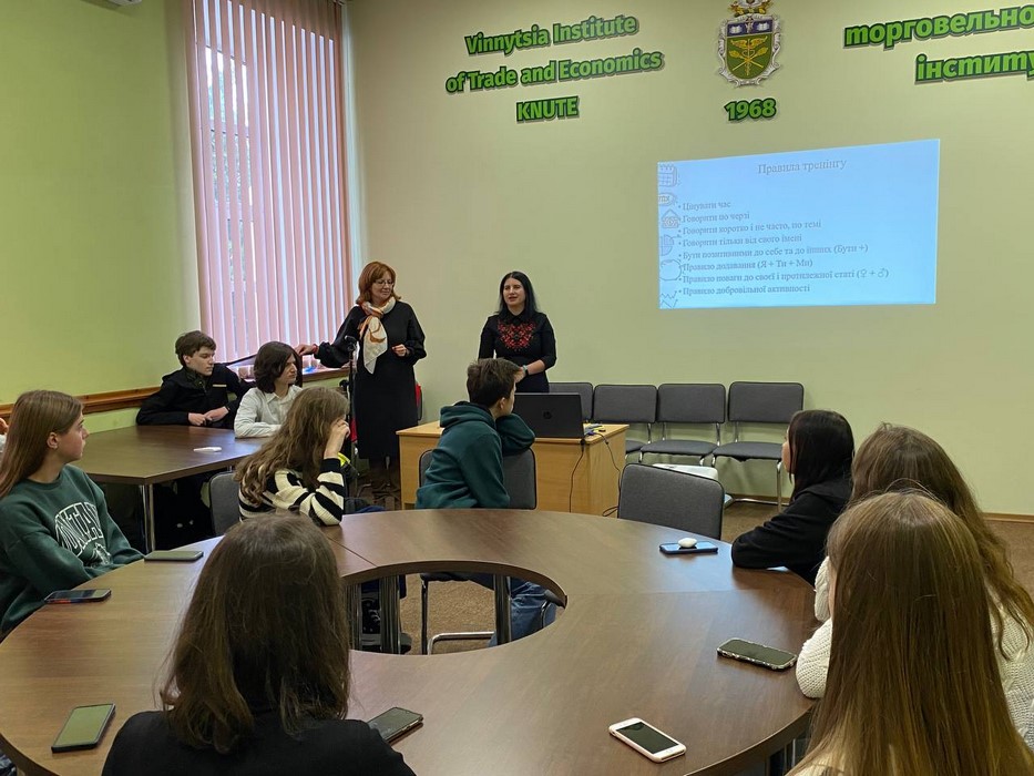 16 жовтня 2023 року у Вінницькому торговельно-економічному інституті ДТЕУ в рамках вивчення курсу за вибором «Фінансова грамотність» учні 10-В класу комунального закладу «Вінницький ліцей №4» взяли участь у діловій грі «Світове бізнес-кафе». Захід провели доценти кафедри економіки та міжнародних відносин ВТЕІ ДТЕУ Оксана Кульганік і Оксана Мельничук.