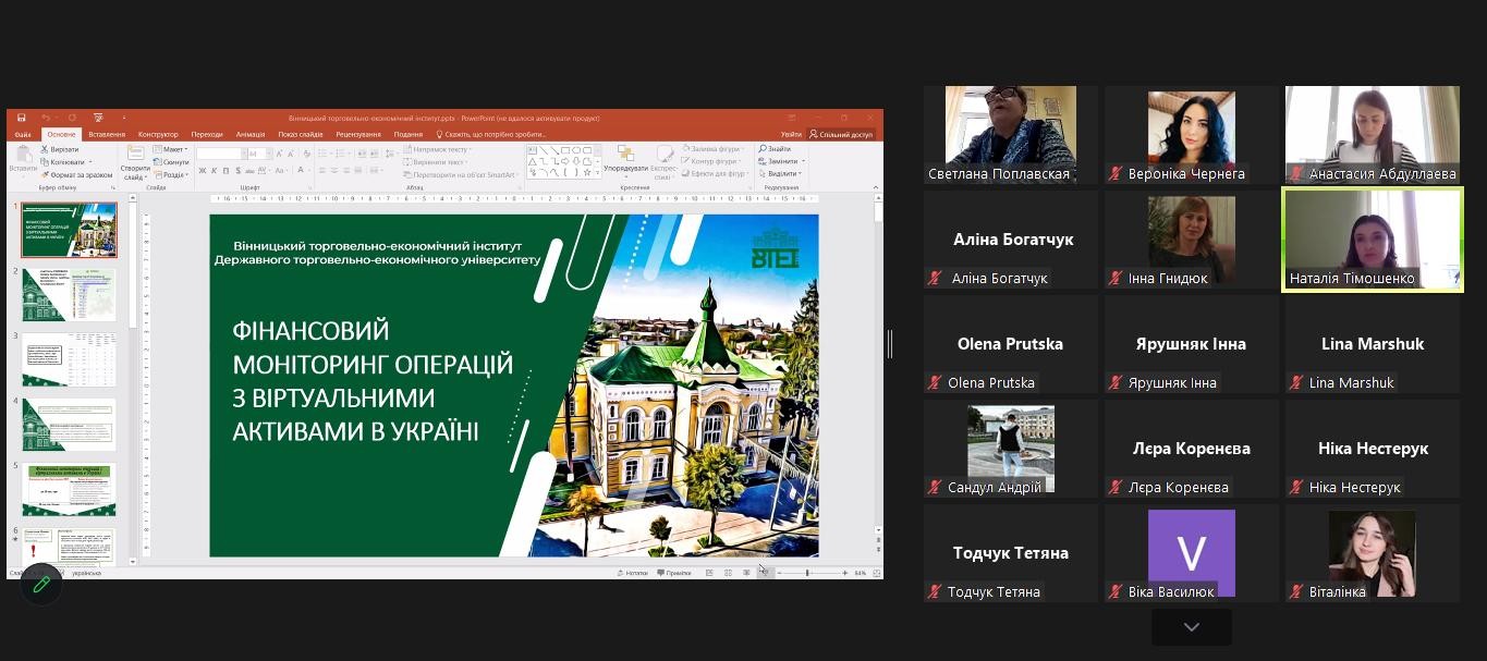 23 листопада 2023 року кафедрою фінансів ВТЕІ з використанням засобів онлайн-платформи Zoom проведено Всеукраїнський круглий стіл "Фінансова політика держави в умовах воєнного стану".