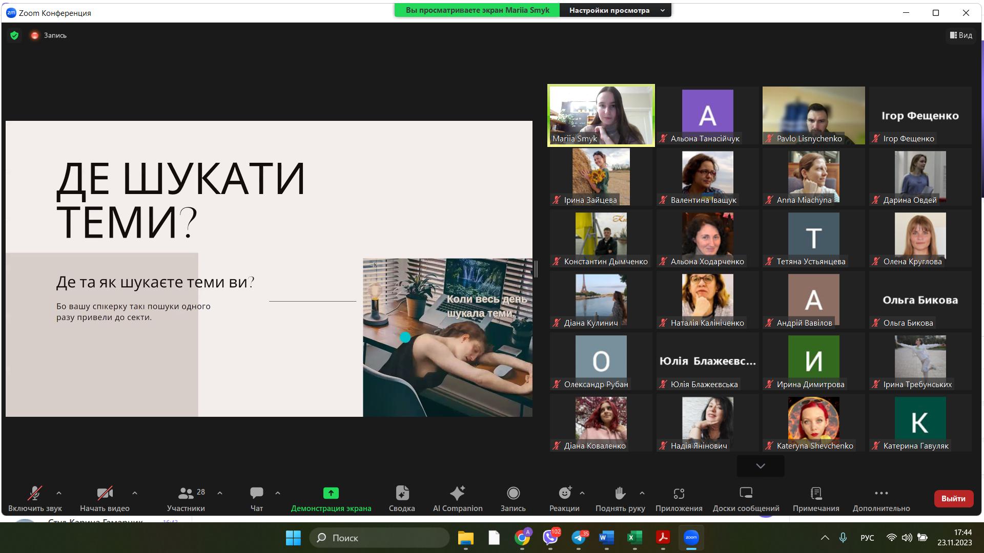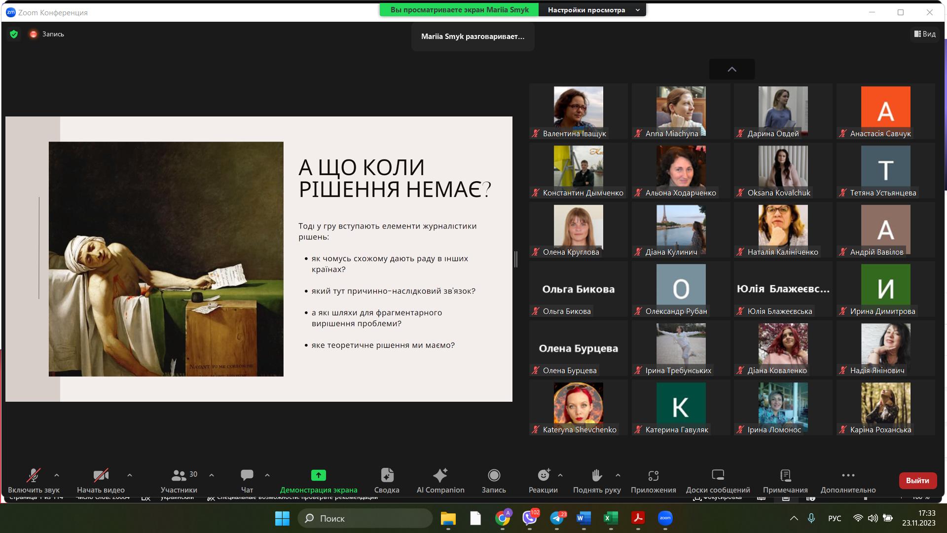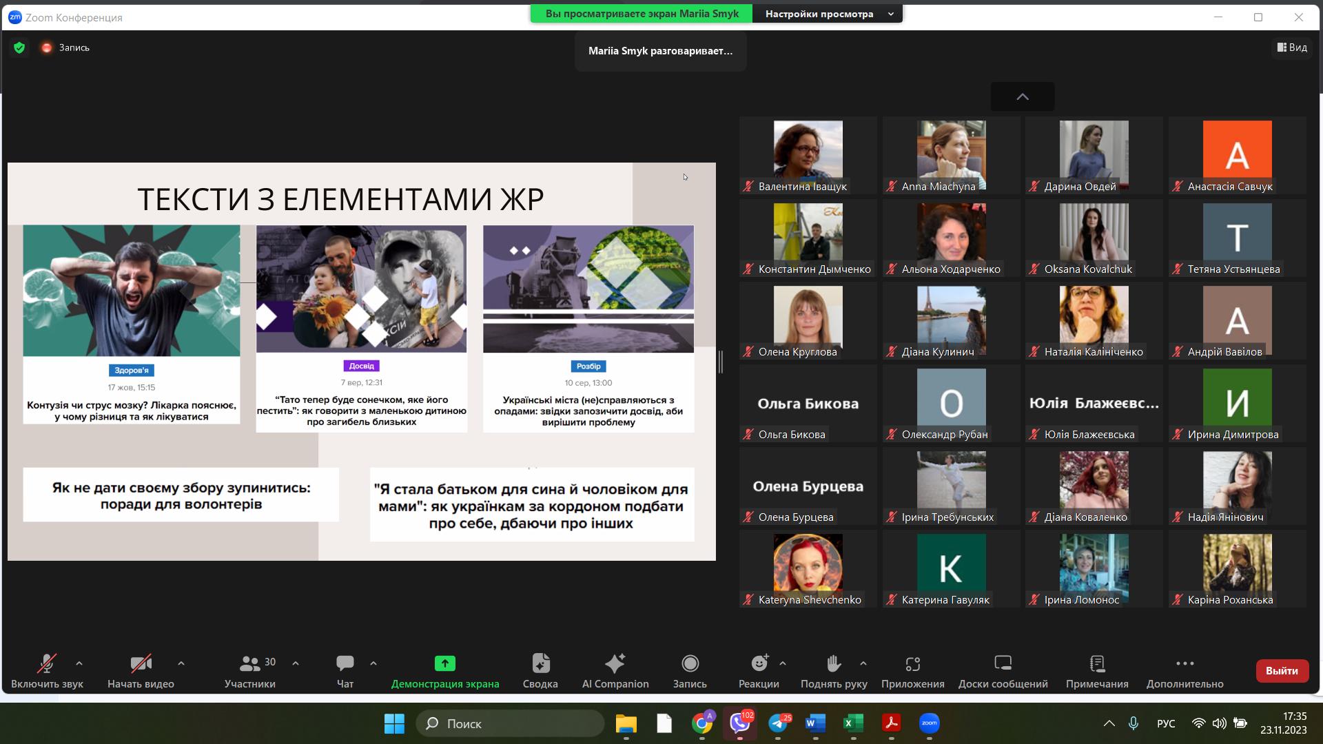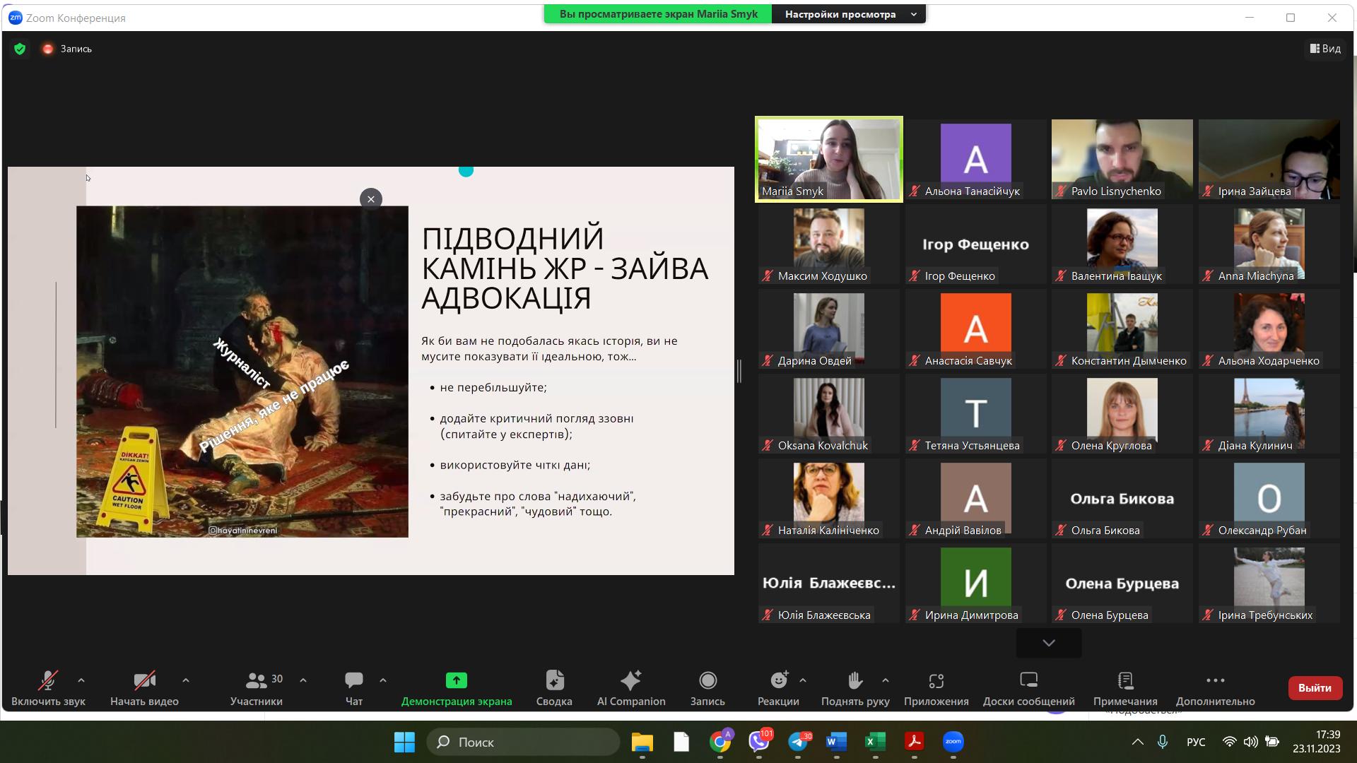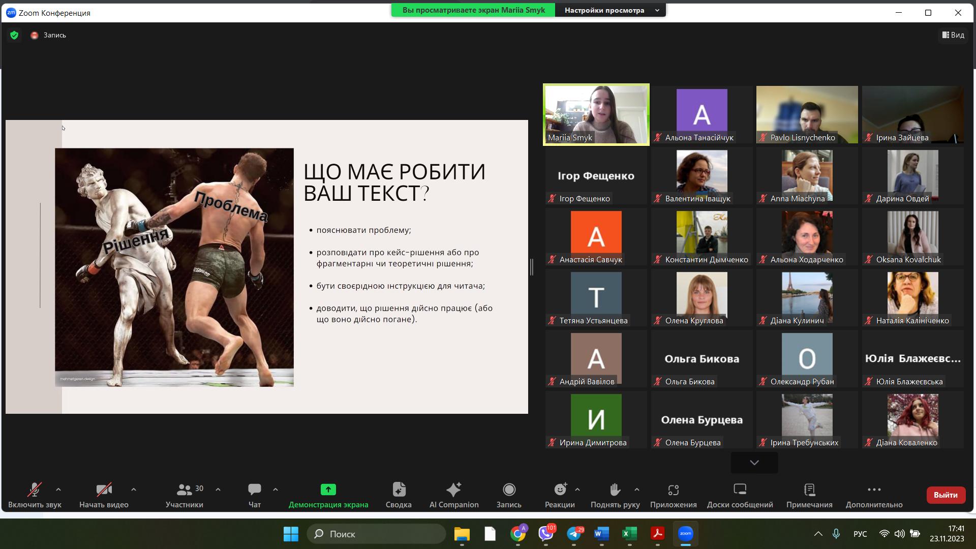 23 листопада 2023 року слухачі бізнес-школи ВТЕІ ДТЕУ брали участь в онлайн-тренінгу «Як впровадити підходи журналістики рішень у своєму медіа» з редакторкою онлайн-видання "Рубрика" Марією Смик.