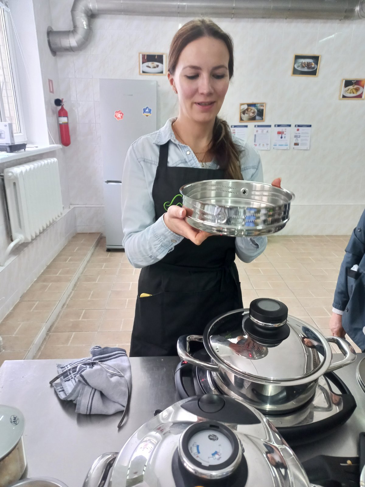 Учасники майстер-класу відкрили для себе можливості інноваційного обладнання АМС щодо приготування традиційних страв, із задоволенням продегустували корисні і смачні бульйони, підпечені відварені реберця, запечене без жиру куряче філе, різотто, приготовлені без води свіжозаморожені овочі та спечену без печі піцу. І все це у рази швидше, ніж зазвичай.