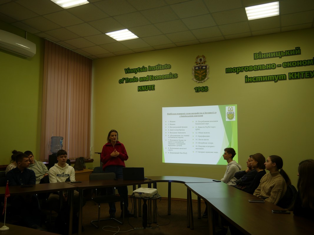 Захід для учнів провела доцент кафедри фінансів Ліна Маршук. Лекція була спрямована на ознайомлення молоді з основами управління особистими фінансами, розумінням економічних процесів у суспільстві, а також на важливості планування бюджету.
