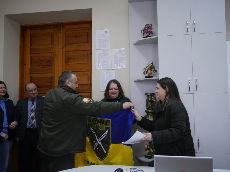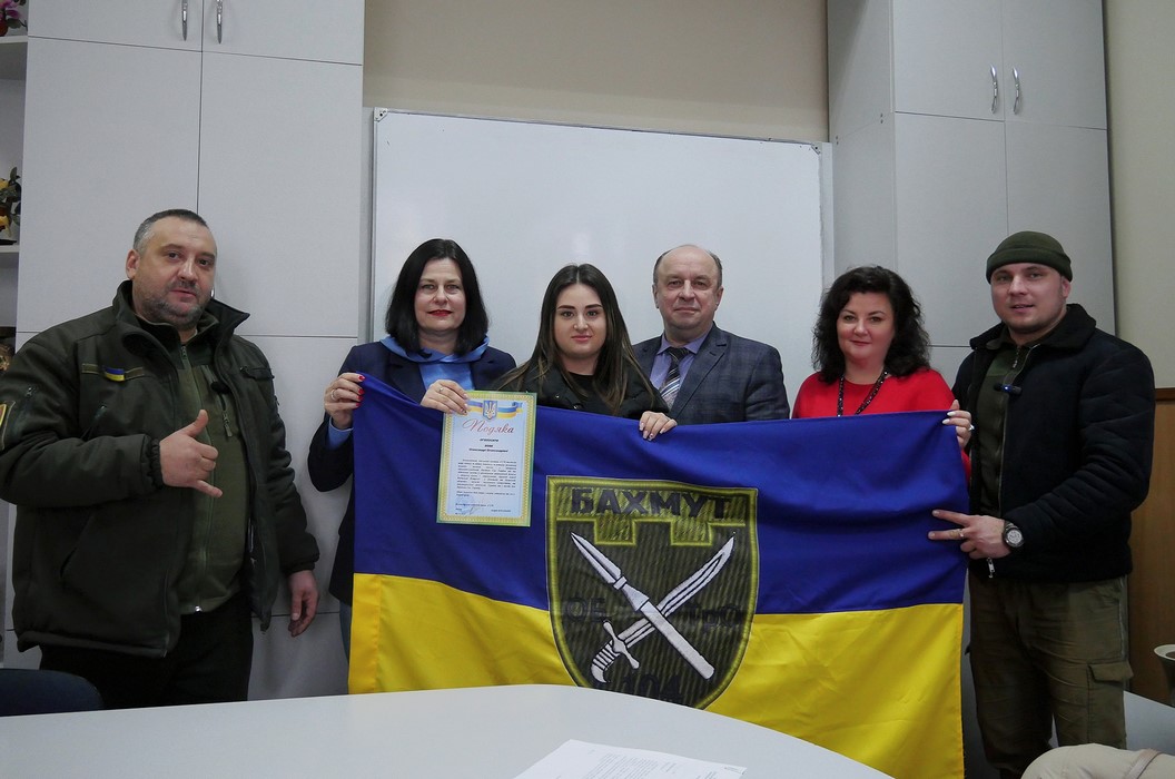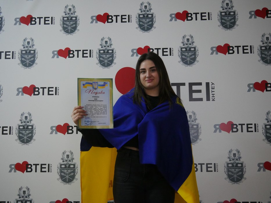 Студентка ВТЕІ ДТЕУ була нагороджена прапором та подякою за активну волонтерську діяльність для ЗСУ