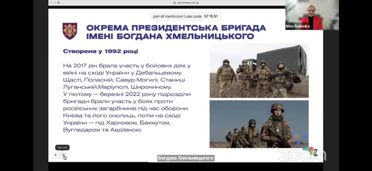 На заході було висвітлено подвиги та звитягу Українського війська від часів Київської Русі до сьогодення, відбулося знайомство із представниками сучасних бойових підрозділів, названих на честь славетних Героїв та битв, а також усі бажаючі мали можливість взяти участь у парламентській вікторині й позмагатися за головний приз заходу!