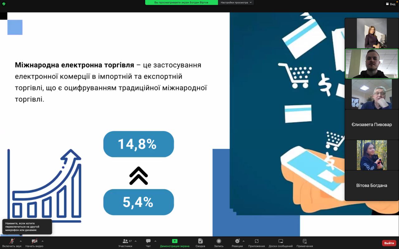 В наукових дискусіях активну участь брали здобувачі вищої освіти спеціальностей 073 «Менеджмент», 281 «Публічне управління та адміністрування», 292 «Міжнародні економічні відносини» та 232 «Соціальне забезпечення». Цікаві та інформативні доповіді презентували Кулик Катерина (ПУА-31д), Вітова Богдана (МЕВ-31д) та Віртов Богдан (МЗД-31д).