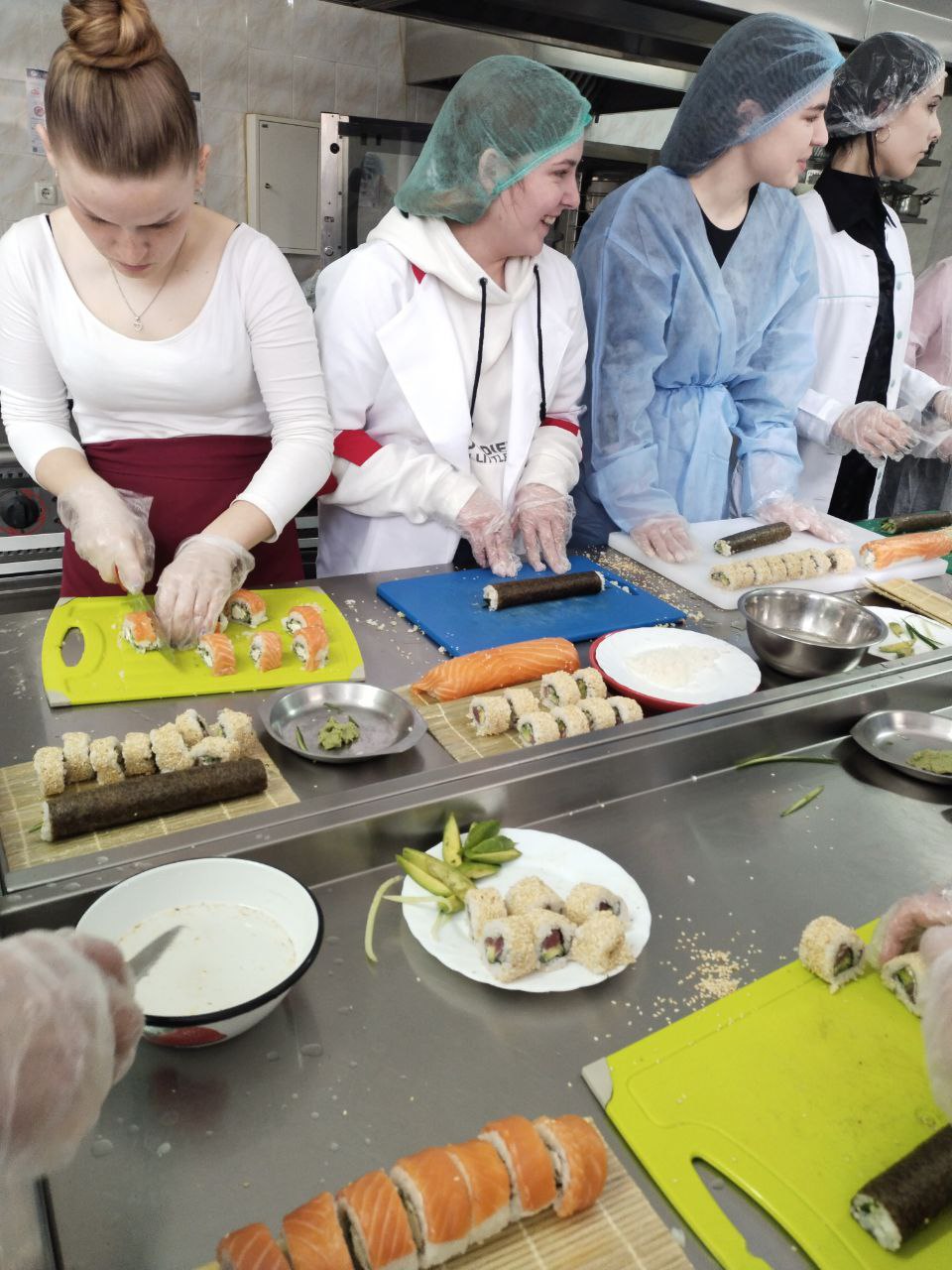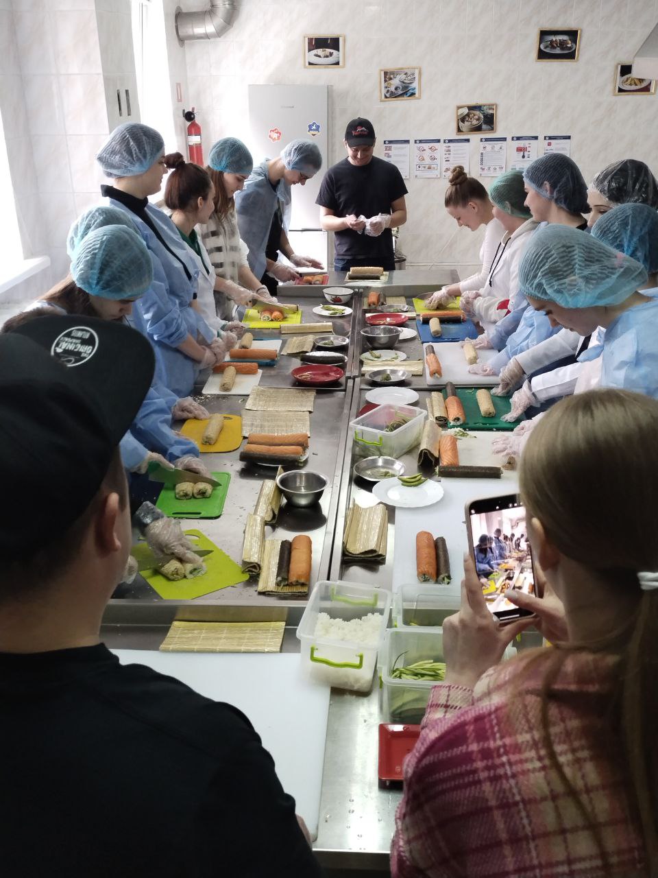 Слухачі Бізнес-школи навчилися всіх тонкощів приготування ролів, відпрацювали техніку скручування та технологію виробництва.