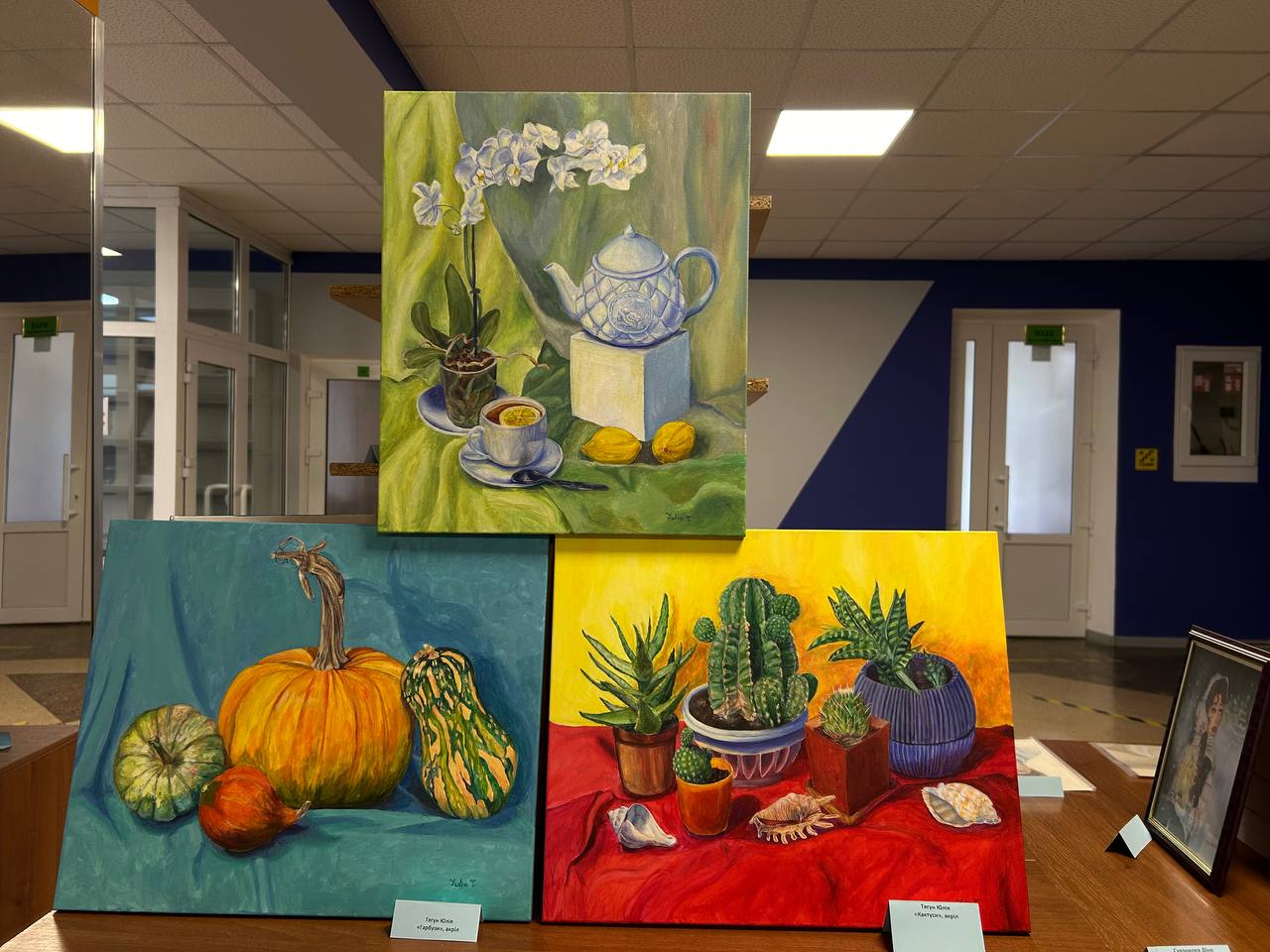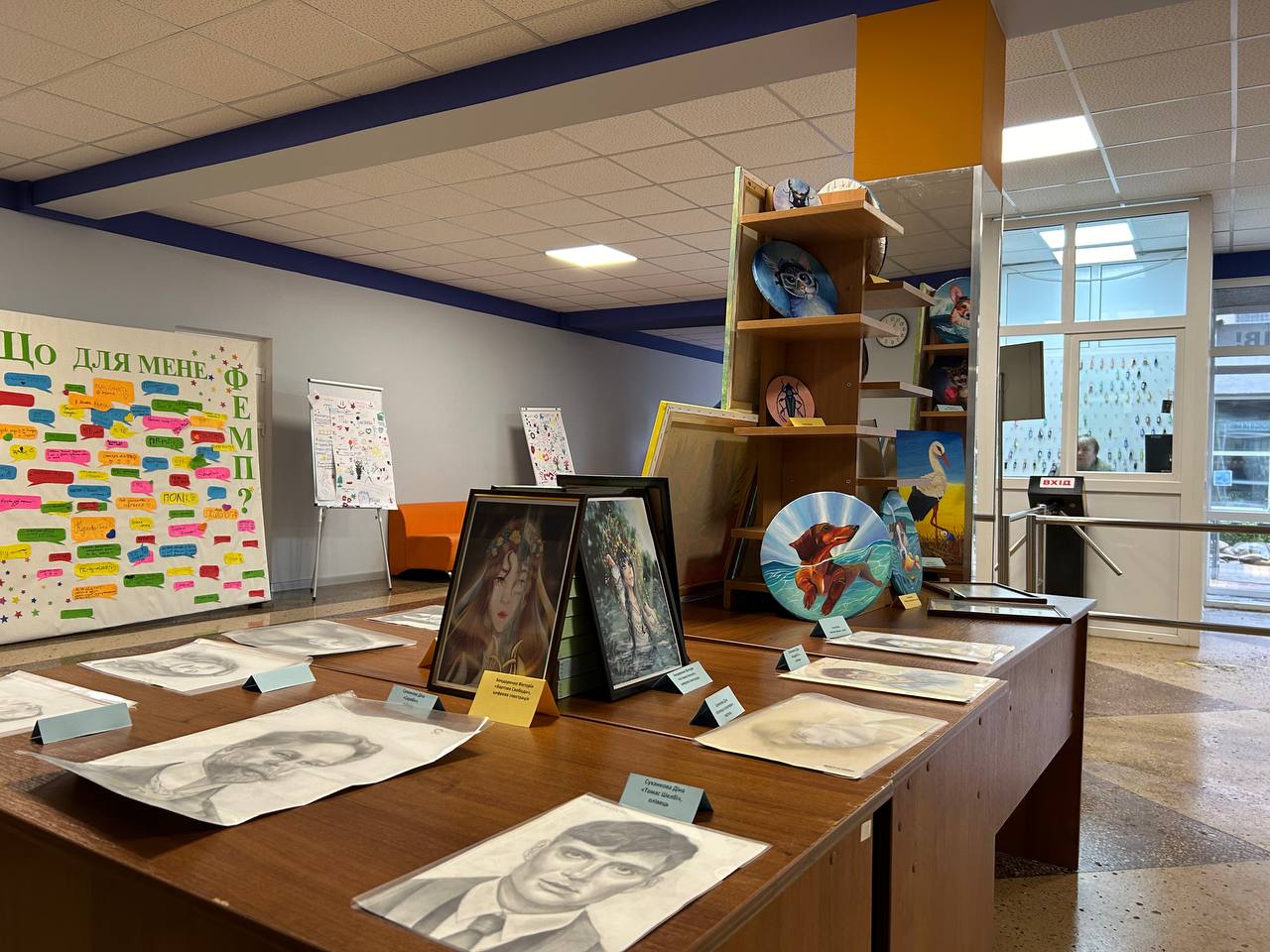 Зокрема, на виставці були представлені роботи здобувачів вищої освіти: Тягун Юлії (гр. ІСТ-11д), Суханкової Діни (ІСТ-11д), Шевчук Вікторії (ІСТ-11дск), Бондаренко Вікторії (ІСТ-11д(м)). Роботи, представлені на виставці, охоплювали широкий спектр жанрів і тематик, від живопису до портретів та цифрової ілюстрації, спонукаючи глядачів до патріотизму, обміну ідеями та розвитку творчих потенціалів в інститутському середовищі.