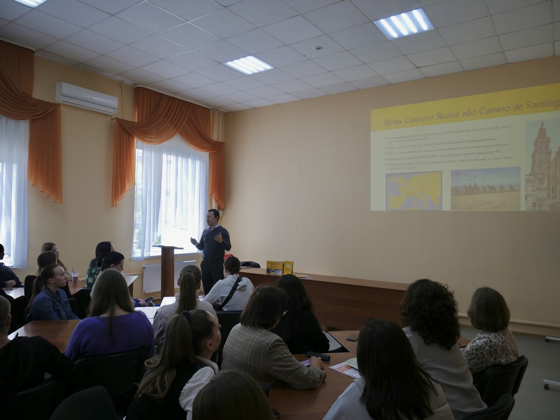 Присутні на лекції здобувачі вищої освіти дізналися історію виникнення та розвитку Шляху святого Якова – напопулярнішого паломницького шляху в світі, яким щороку проходять тисячі пілігрімів.