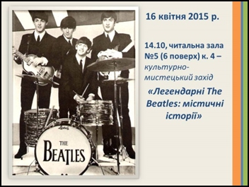 перед навчальним корпусом №4. Не дивлячись на мінливу погоду і на загрозу зриву заходу, флеш-моб пройшов весело, динамічно та гучно, привернувши увагу як простих перехожих, так і студентів та викладачів інституту. На цей же день було заплановано проведення культурно-мистецького заходу «Легендарні The Beatles: містичні історії», який проходив у форматі виховної години для студентів першого курсу груп ДФ-11д, ОАП-11д, ДФК-11д та ДФК-12д. Захід був організований і проведений заступником декана обліково-фінансового факультету к.е.н., доцентом Сегедою С.А. та присвячений 50-річчю виходу у світ пісні «Yesterday», яка визнана кращою піснею XX століття і занесена до книги рекордів Гіннесса по кількості кавер-версій зроблених на цю пісню. У цікавій формі з фото-, відео- та аудіосупроводом студенти дізналися про біографію відомого гурту, історію написання деяких синглів, випусків відомих альбомів, а також містичні історії, які постійно супроводжували членів групи від моменту створення аж до моменту загибелі Джона Леннона. До участі у заході був запрошений дует «The Frisson» у складі Лілії Якубовської та Влада Сівака, які виконали кілька пісень відомого гурту.
