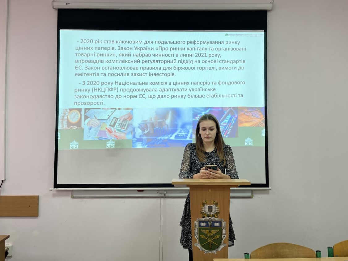 Зралко Софія, доповідь на тему «Інфраструктура ринку цінних паперів України в сучасних умовах» (ФБСФ-21д);