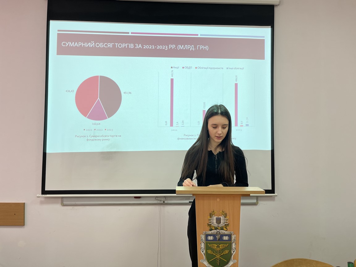Під час засідання з доповідями виступили здобувачі вищої освіти спеціальностей «Фінанси, банківська справа, страхування та фондовий ринок» ОС «бакалавр»: