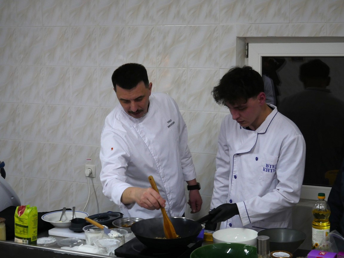 Майстер-клас провів Віталій Сапотніцький, шеф-кухар ресторану «Lolla – gastro place», готельно-ресторанного комплексу «Drive Club», а присутні на заході здобувачі вищої освіти мали змогу долучитися до приготування та дегустації всіх варіантів страви.