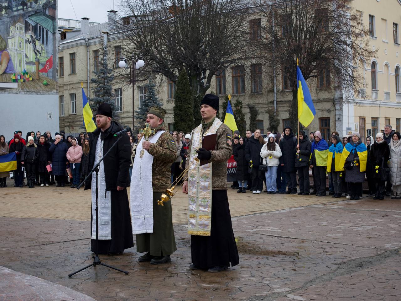 Ця акція одночасно проходила по всій Україні, щоб вшанувати пам'ять Героїв Небесної Сотні, які загинули під час Революції Гідності 2013-2014 років.