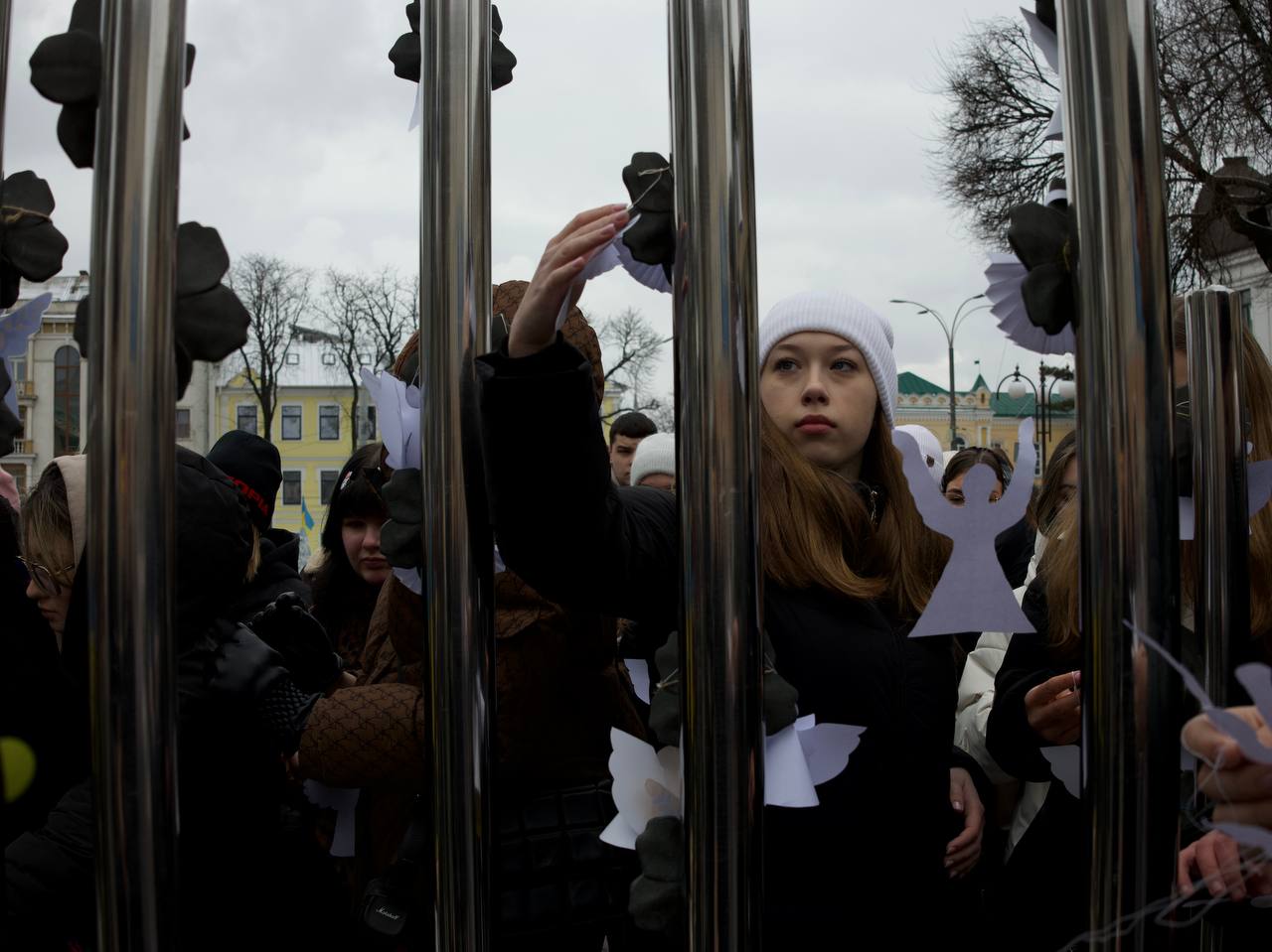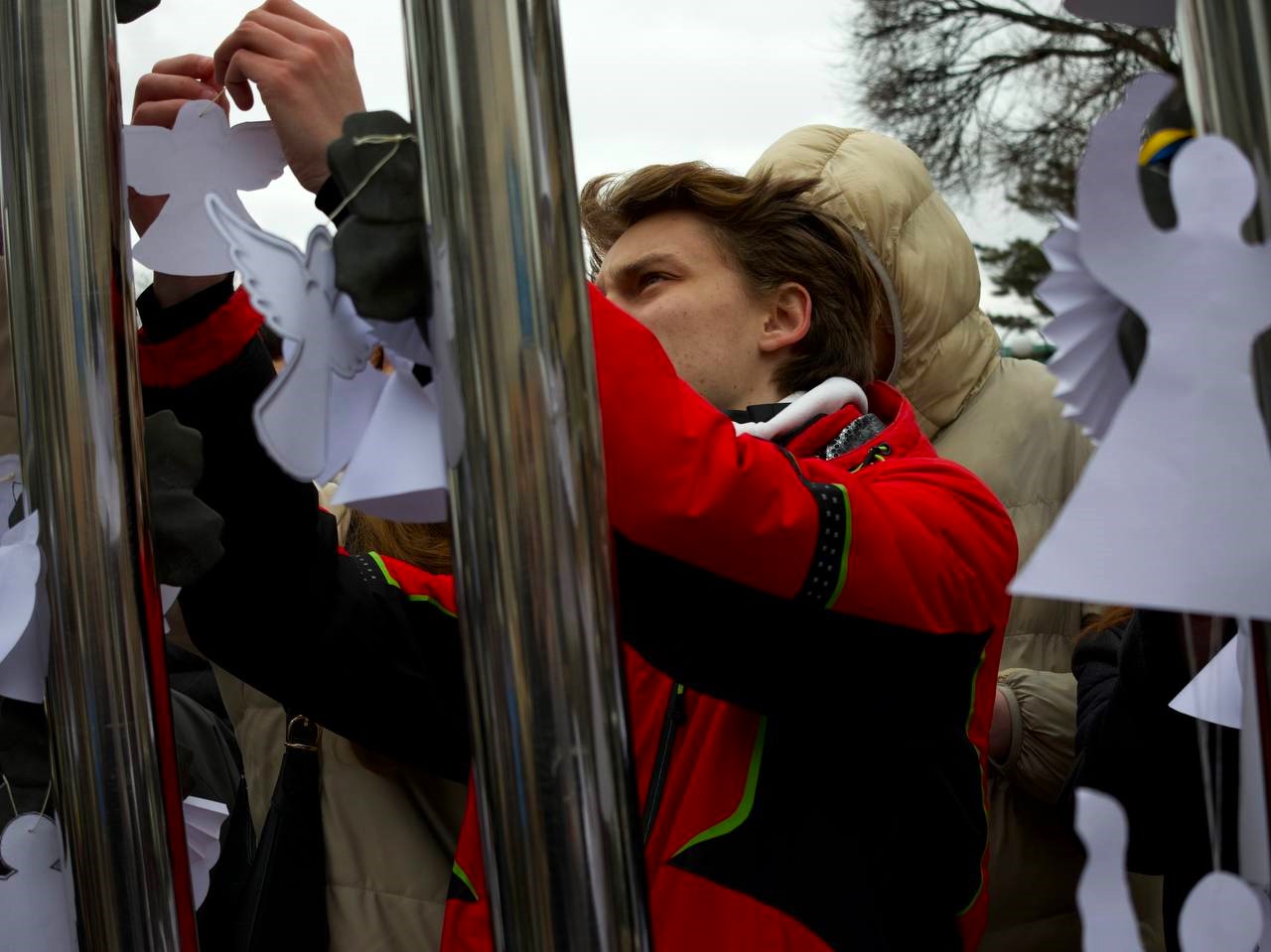 20 лютого 2025 р. о 12:00 на площі Героїв Небесної Сотні біля скульптурної композиції «Дерево Свободи» відбулась тиха акція «Ангели памʼяті», до якої долучились студенти Вінницького торговельно-економічного інституту ДТЕУ.