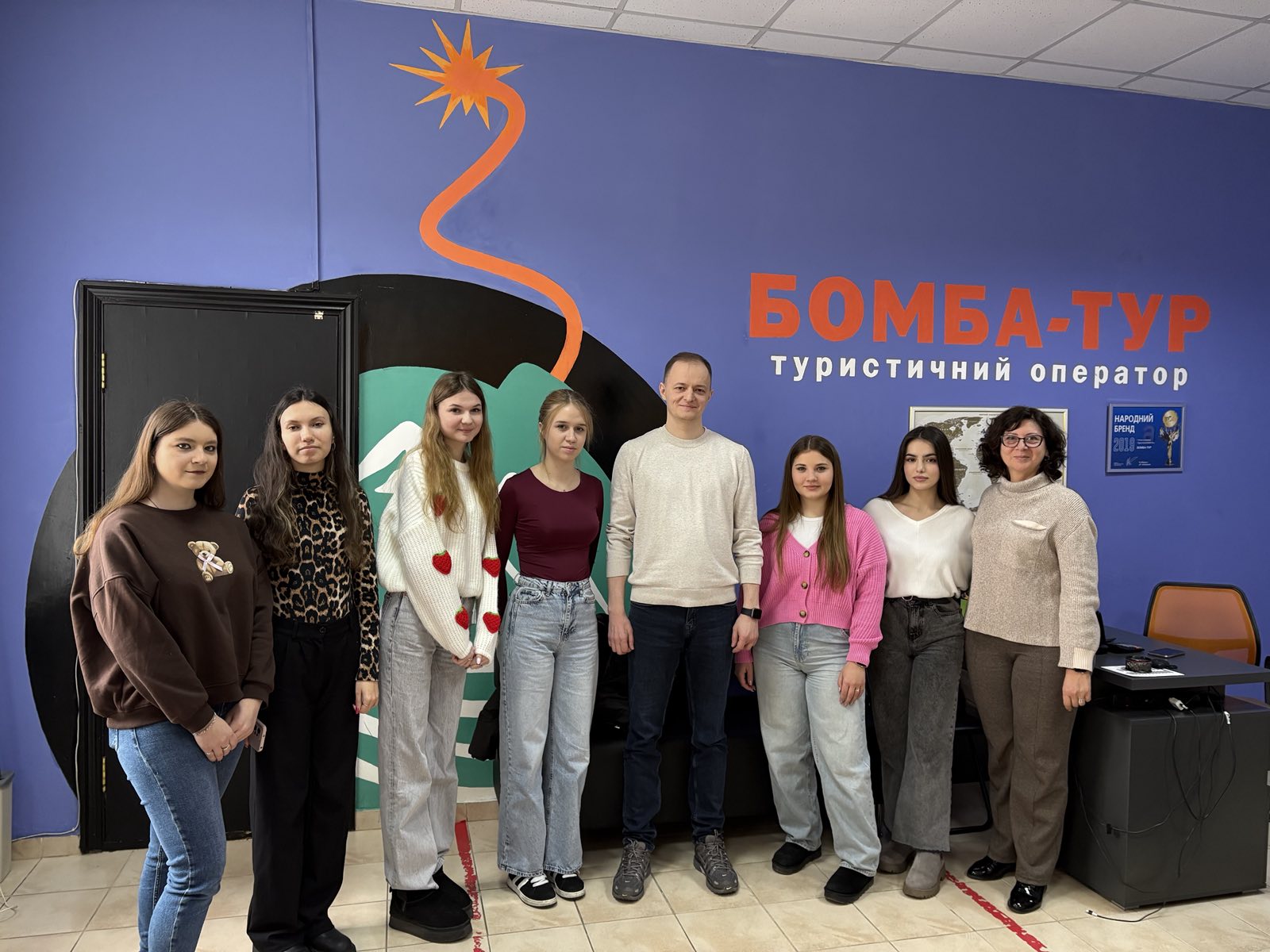 27 лютого 2025 року здобувачі вищої освіти за спеціальністю 242 «Туризм і рекреація» освітньою програмою «Туризм і рекреація» (гр. ТР-21д) у рамках вивчення освітнього компоненту «Організація туризму» відвідали офіс ТОВ «Туристичний оператор «Бомба-тур».