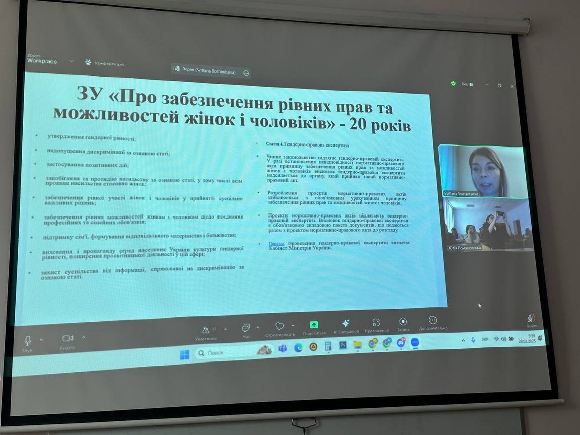 28 лютого 2025 року для здобувачів вищої освіти спеціальності 072 "Фінанси, банківська справа, страхування та фондовий ринок" к.ю.н., доценткою Львівського державного університету внутрішніх справ та експерткою з гендерної рівності Світланою Романцовою було проведено лекцію на тему: «Права жінок та гендерна рівність в Україні та країнах Європи».