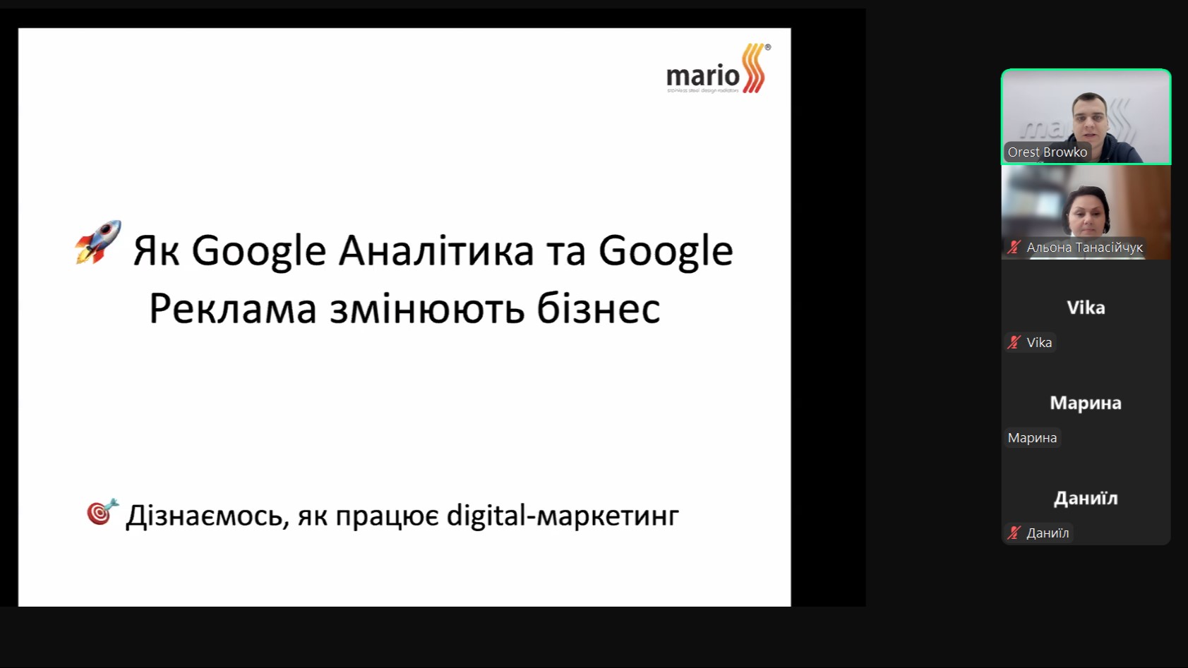 4 березня 2025 року відбулось засідання Бізнес-школи ВТЕІ ДТЕУ, на якому спікером виступив Орест Бровко, Digital-маркетолог компанії Mario. Тема зустрічі: «Як Google Аналітика та Google реклама змінюють бізнес».