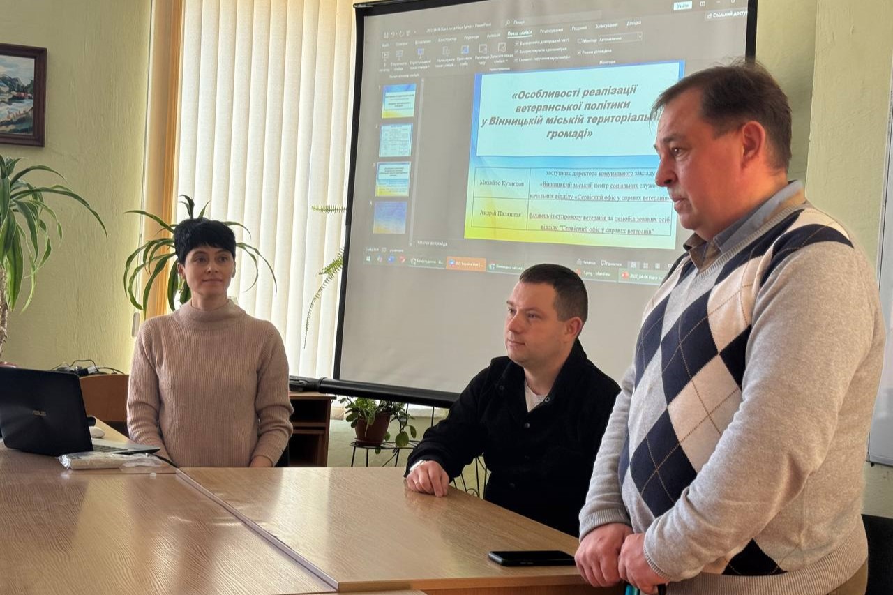 На початку засідання відбулась бесіда із ветеранами російсько-української війни: Михайлом Юрійовичем Кузнецовим – заступником директора комунального закладу «Вінницький міський центр соціальних служб», начальником відділу «Сервісний офіс у справах ветеранів» та Андрієм Віталійовичем Паляницею – фахівцем із супроводу ветеранів та демобілізованих осіб відділу «Сервісний офіс у справах ветеранів». Учасники наукової студії дізналися про життєвий та професійний шлях запрошених гостей, виступи фахівців-практиків були присвячені також особливостям реалізації ветеранської політики у Вінницькій міській територіальній громаді, цифровим рішенням щодо надання публічних послуг.