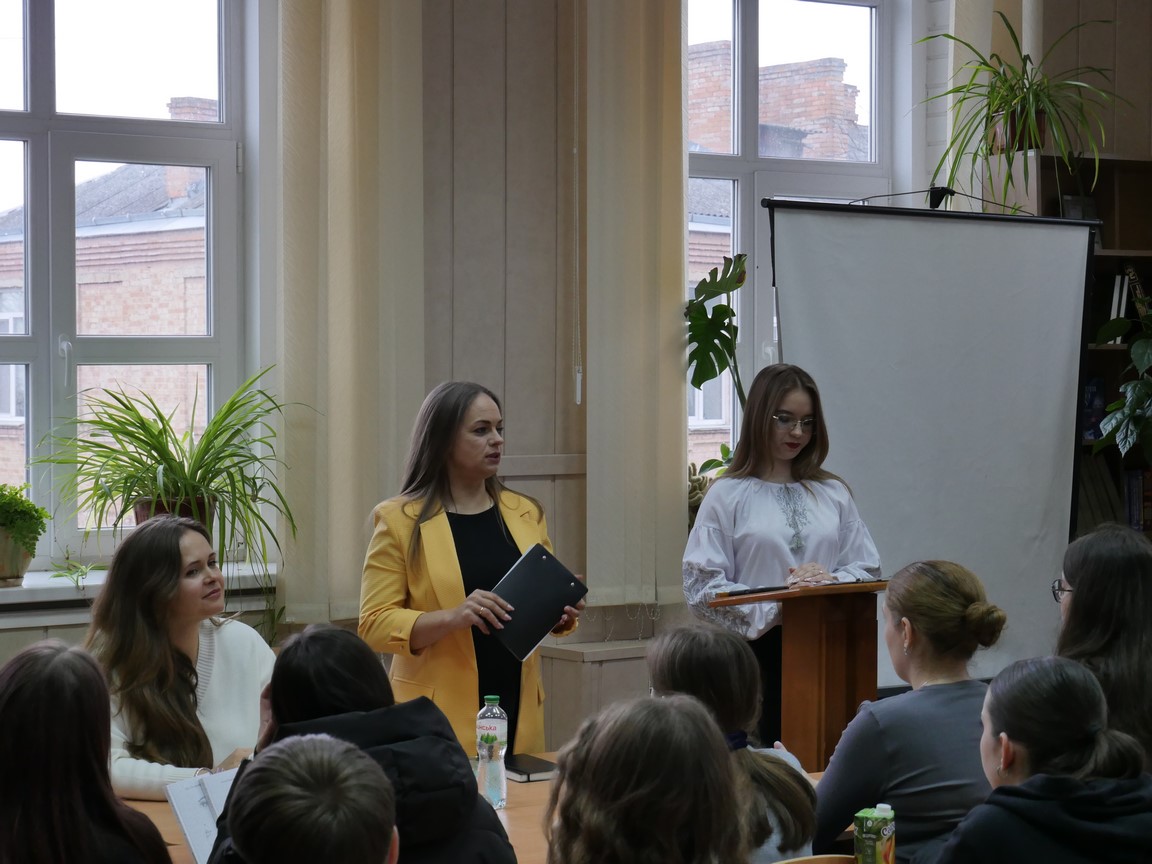 Ведуча, Марія Костюк, студентка 2 курсу спеціальності «Публічне управління та адміністрування» наголосила на тому, що література – це особливий простір, де кожен знаходить відображення своїх почуттів, думок і мрій. Марія розпочала захід власним віршем, як особистість, для якої поезія стала способом виразити і зрозуміти себе та світ.