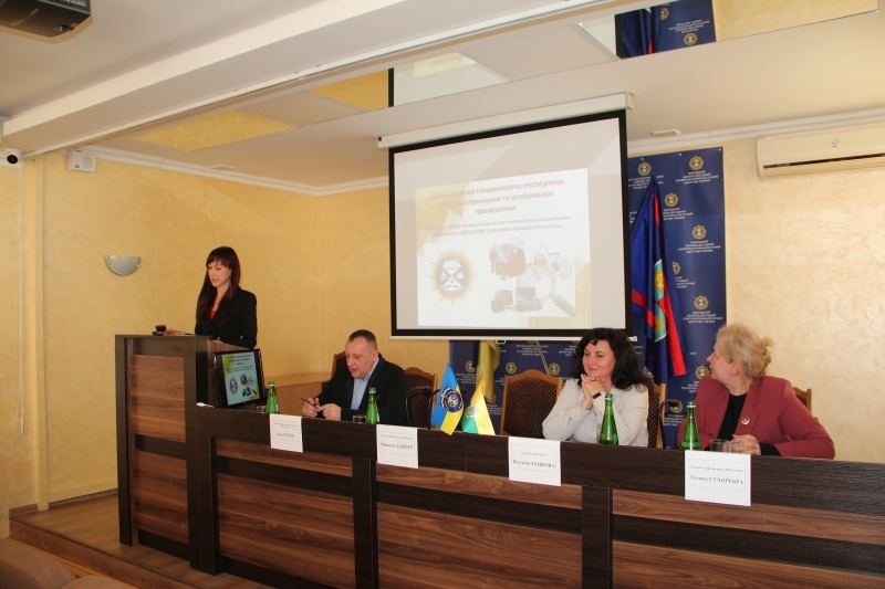 У рамках круглого столу працівники центру провели екскурсію та ознайомили викладачів кафедри права та товарознавства, експертизи та торговельного підприємництва з діяльністю НДЕКЦ МВС, коротко розповіли про історію становлення центру. Особливу увагу було приділено напряму хімічних та молекулярно-генетичних досліджень. Продемонстрували роботу хімічної лабораторії, розповіли про найбільш поширені наркотичні засоби. В секторі почеркознавчих досліджень, технічного дослідження документів та обліку була продемонстрована колекція підроблених грошових знаків та бланків документів та способи підробки грошових знаків, які найчастіше зустрічаються при дослідженні. Презентовано особливості роботи сучасної повнопрофільної лабораторії, обладнання якої дозволяє отримати та проаналізувати ДНК-профіль людини, що вкрай важливо у період війни, для ідентифікації осіб, які загинули або зникли безвісти внаслідок збройної агресії рф проти України.