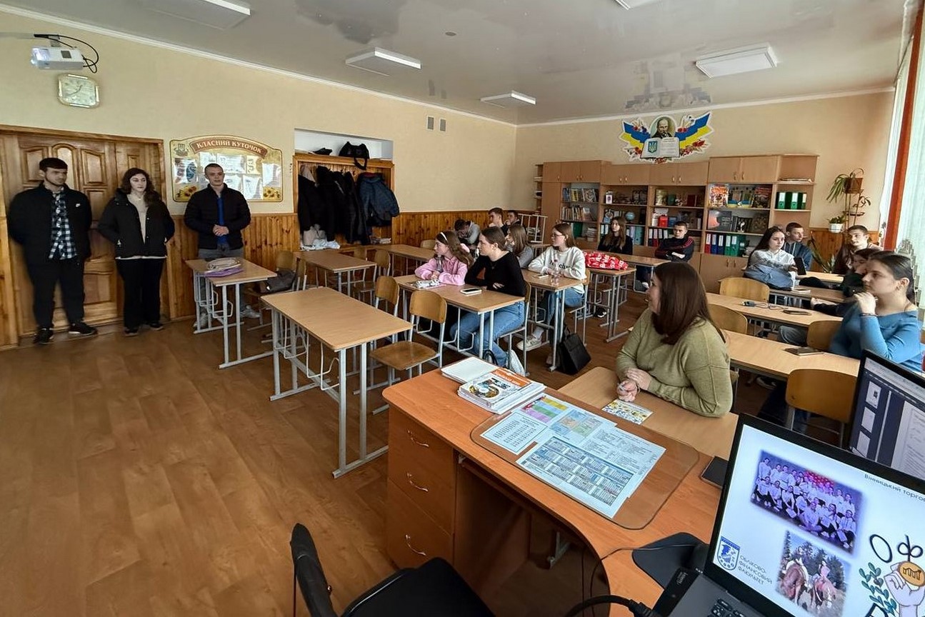 2 квітня 2025 року в межах тижня обліково-фінансового факультету доцент кафедри іноземної філології та перекладу Дарʼя Коровій та студентський актив факультету відвідали КЗ «Ліцей №1 селища Стрижавка Вінницького району Вінницької області», де провели інформаційну сесію «Build your Future with VITE SUTE» для майбутніх абітурієнтів.