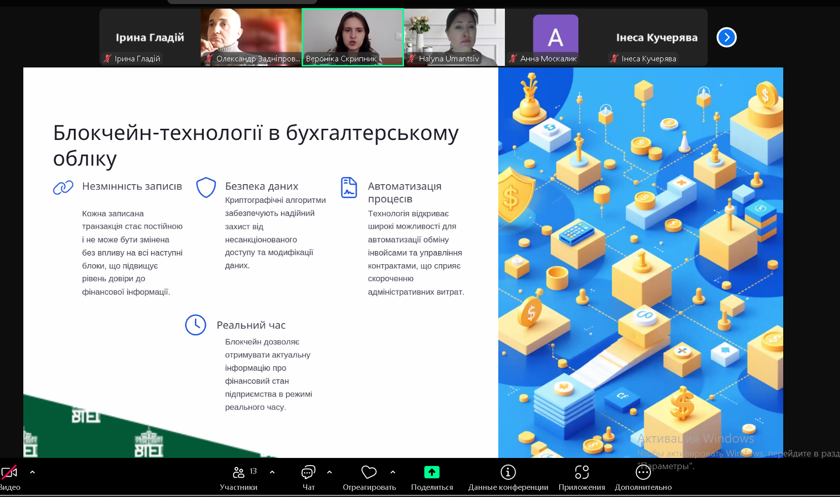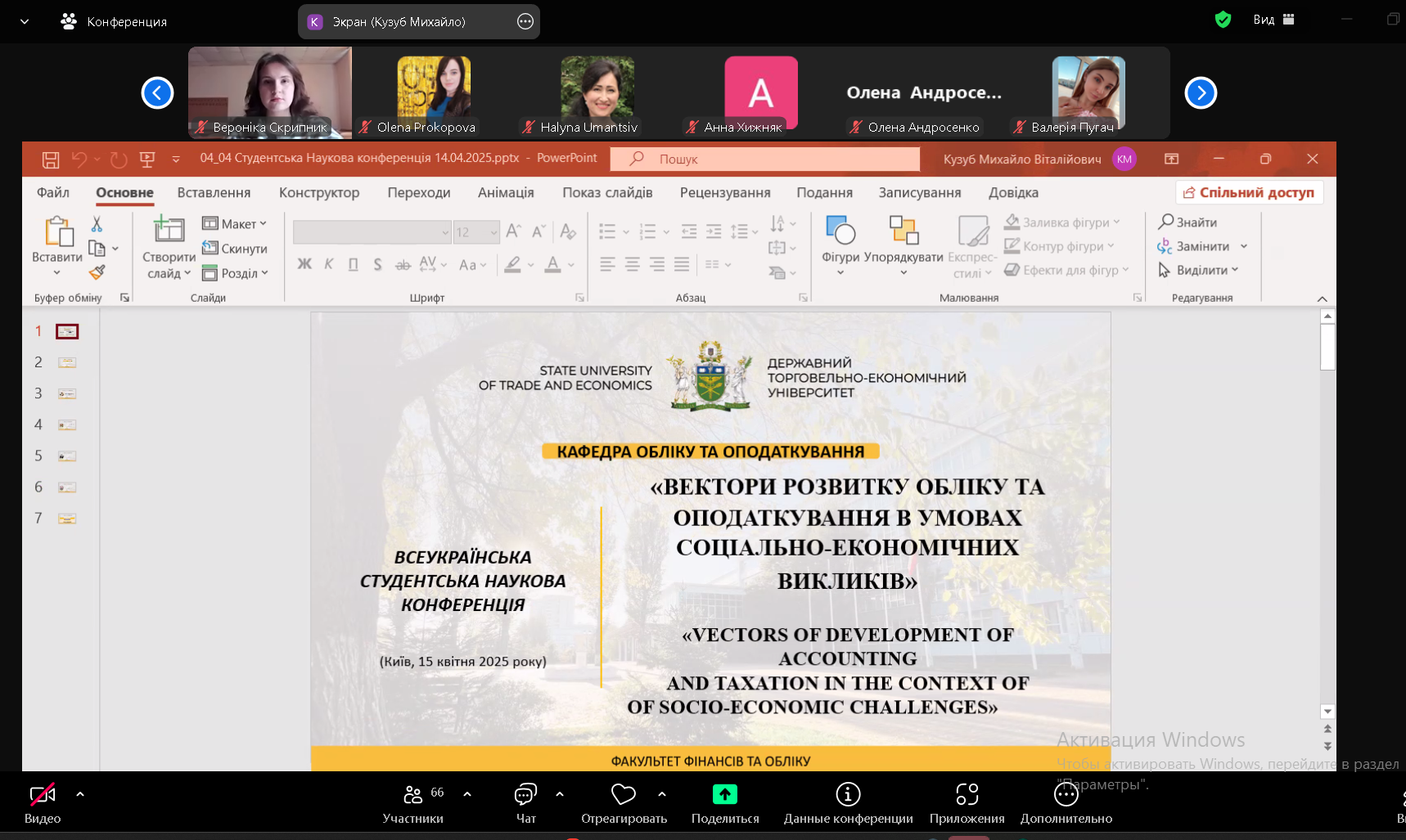 Студентка Скрипник Вероніка виступила з доповіддю на тему: «Еволюція облікових практик: від традиційних методів до цифрових технологій» у рамках роботи IV секції «Облікова політика підприємства: галузеві особливості» (науковий керівник - доцент Гладій Ірина). Представлення результатів досліджень на всеукраїнському рівні засвідчує високу якість підготовки здобувачів освіти у ВТЕІ ДТЕУ та зацікавленість студентської молоді у вирішенні сучасних викликів, що стоять перед бухгалтерською професією. Бажаємо студентам подальших успіхів, творчого натхнення та нових звершень у науковій діяльності!