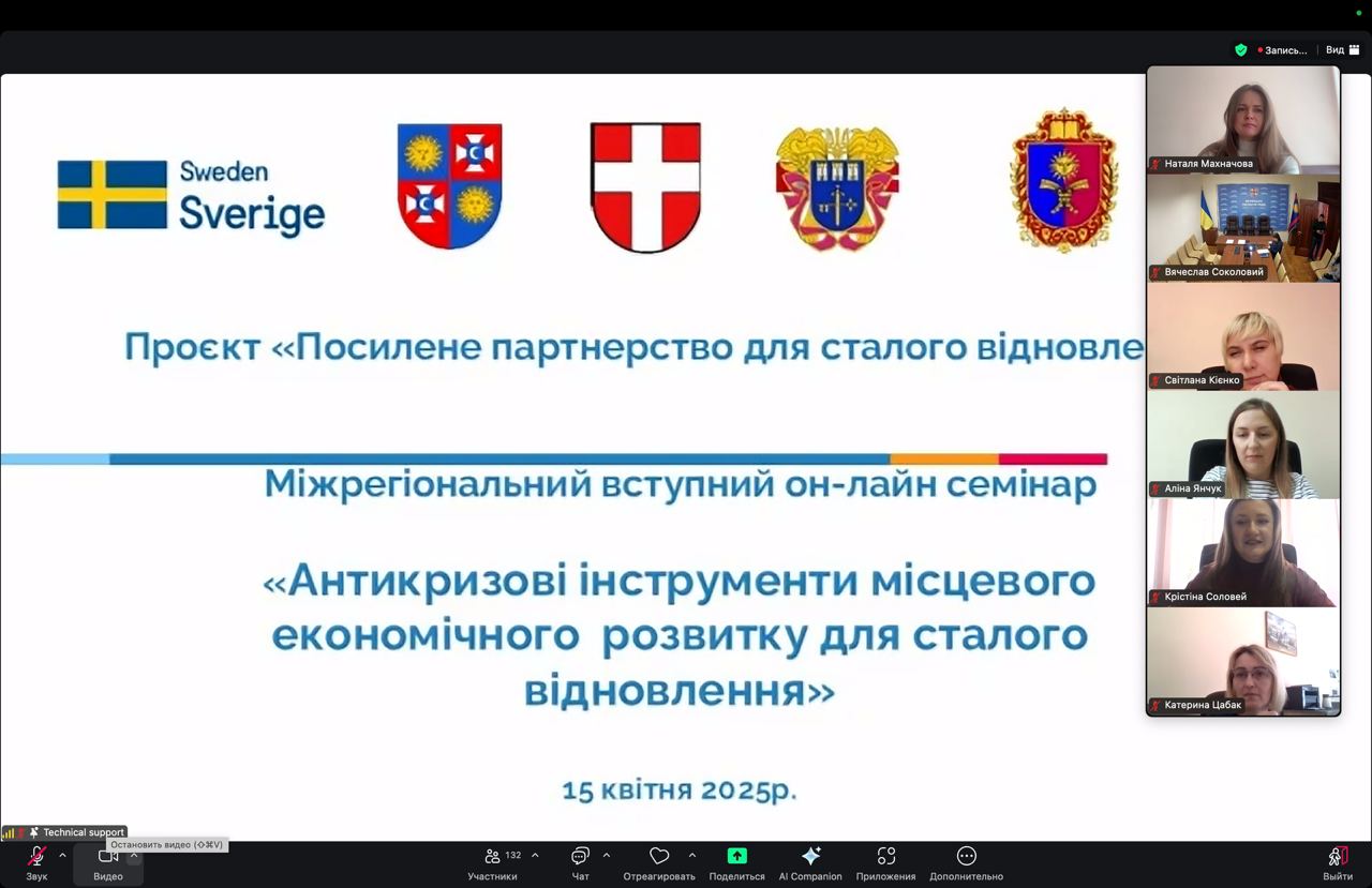 Участь у Міжрегіональному вступному онлайн семінарі «Антикризові інструменти місцевого економічного розвитку для сталого відновлення»