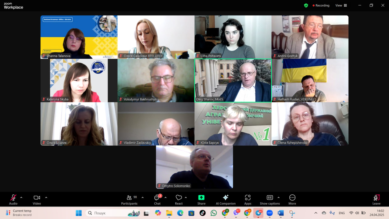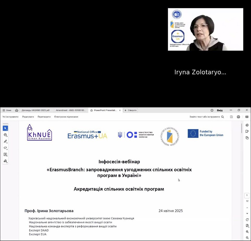 21 квітня 2025 року представники ВТЕІ ДТЕУ взяли участь в інформаційній сесії-вебінарі «ErasmusBranch: запровадження узгоджених спільних освітніх програм в Україні», яка була організована Національним Еразмус+ офісом в Україні за підтримки Міністерства освіти і науки України.