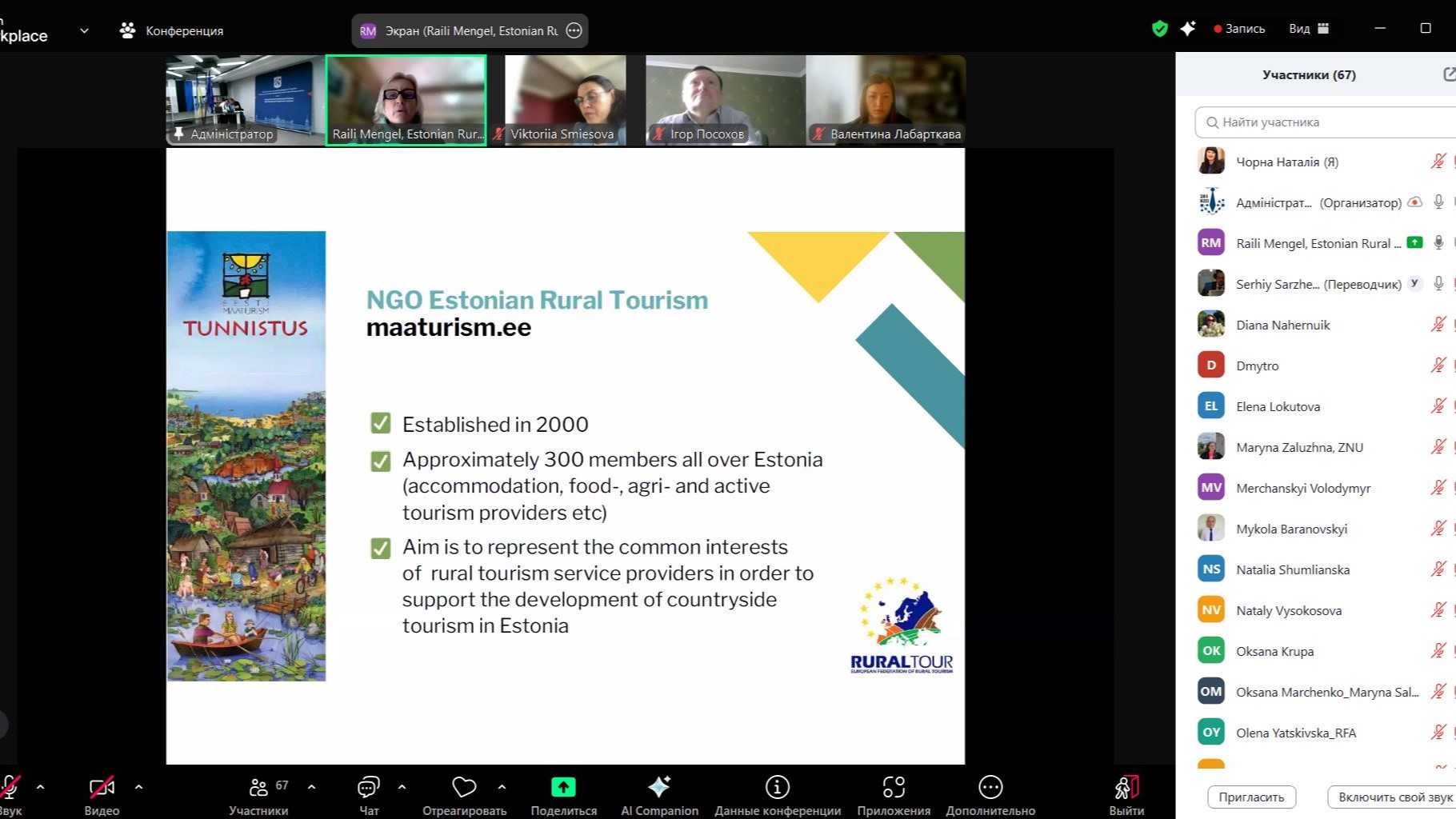 На конференції з доповідями, велика частина яких стосувалася розвитку сільського туризму, виступили представники естонської та української сторін. Так, учасникам заходу були презентовані доповіді про експортний потенціал сільського туризму, можливості використання креативних індустрій для розвитку сільського туризму, успіхи кластерів сільського туризму, а також результати реалізації проєкту на рівні конкретних практик діючих підприємств.
