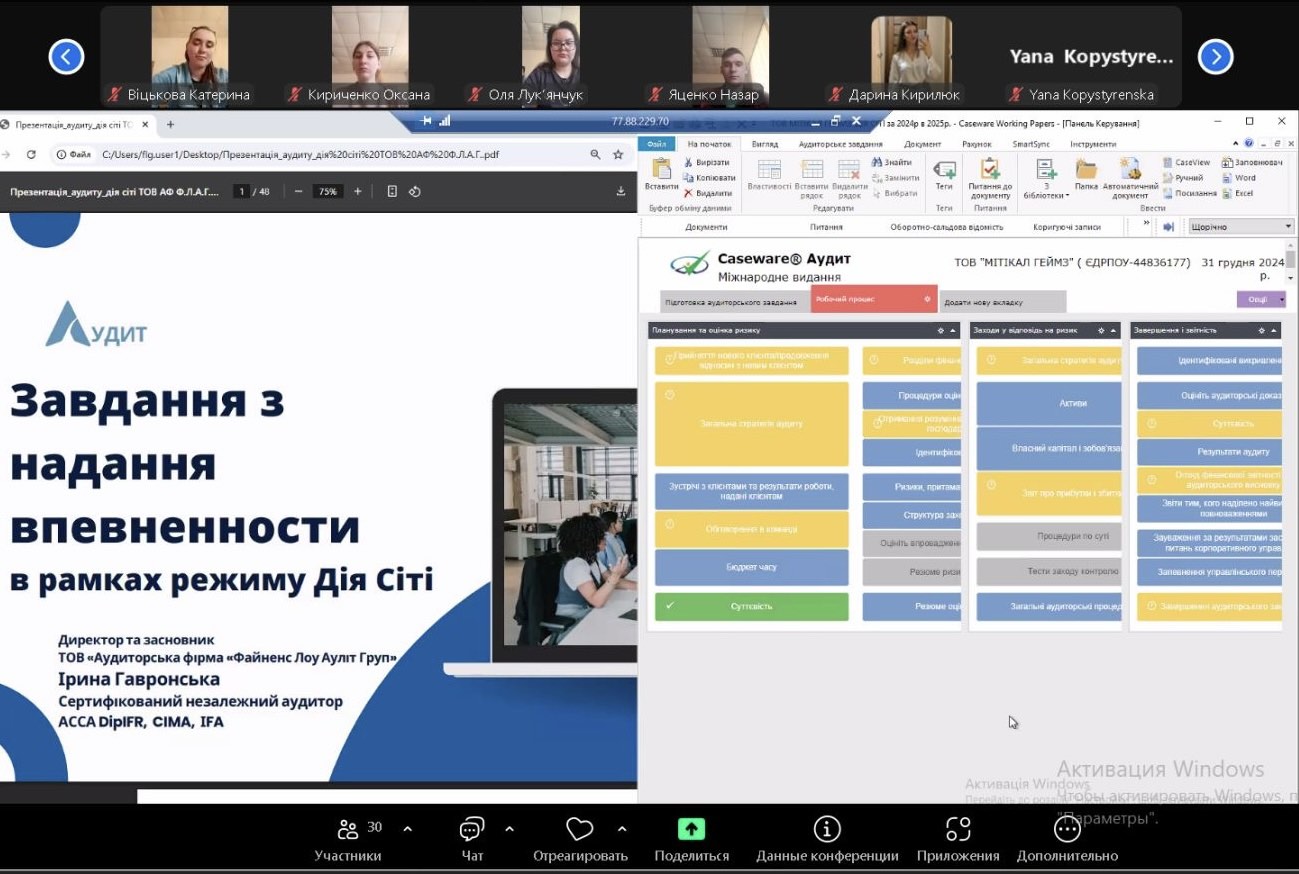 1 травня 2025 року на базі кафедри обліку та оподаткування було проведено лекцію on-line директором аудиторської фірми «Файненс Лоу Аудіт Груп», сертифікованим аудитором Гавронською Іриною. Тема лекції: «Аудит Дія-City».