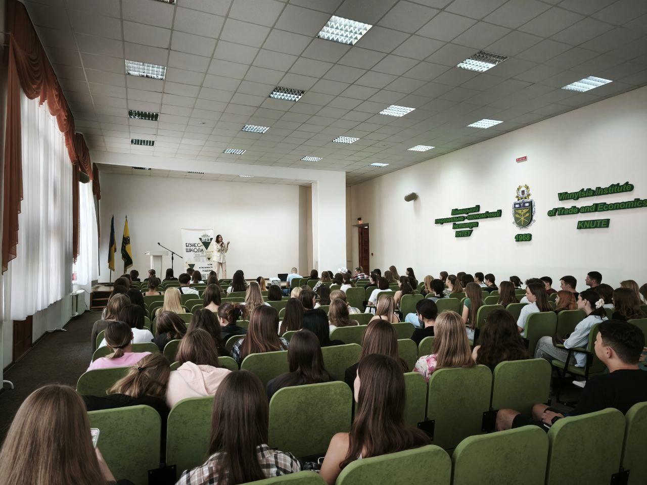 9 вересня 2025 року у Бізнес-школі ВТЕІ ДТЕУ відбулося перше засідання нового навчального року. Гостею зустрічі стала Ольга Сольвар — експертка з красномовства та публічних виступів, телеведуча, засновниця Всеукраїнської асоціації спікерів та авторка курсу «ARTspeaker».