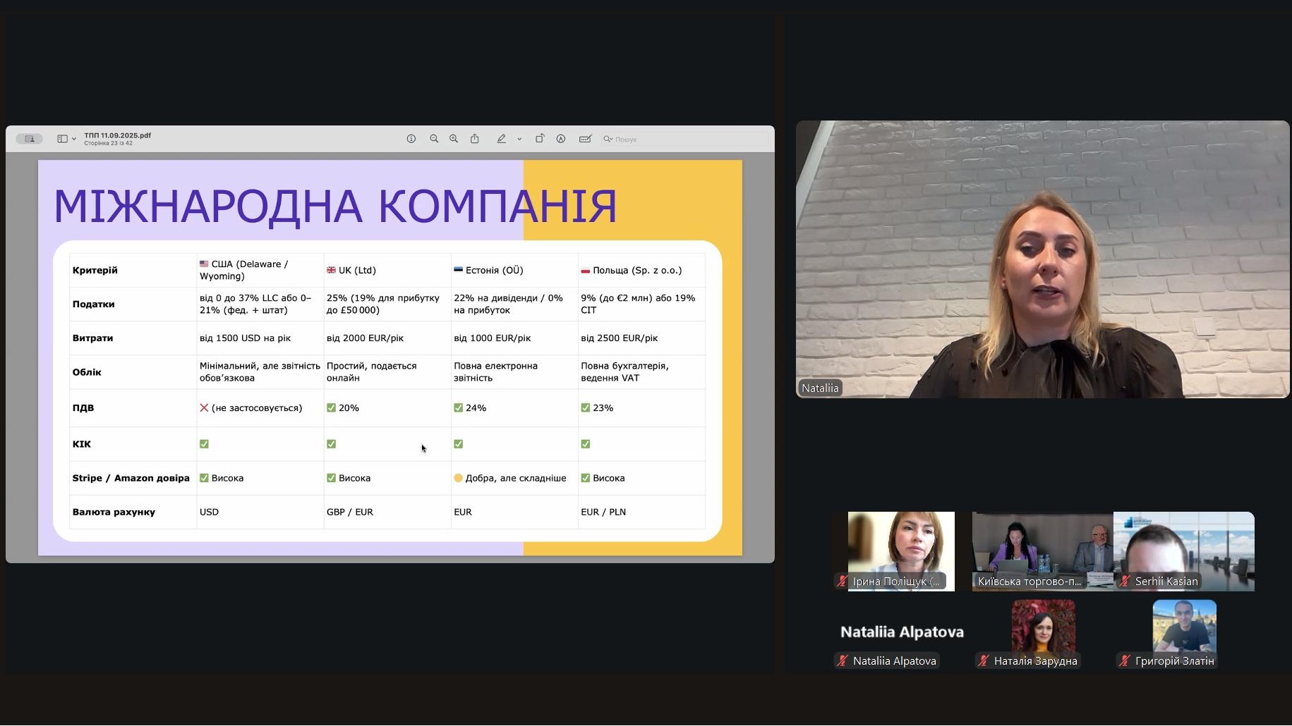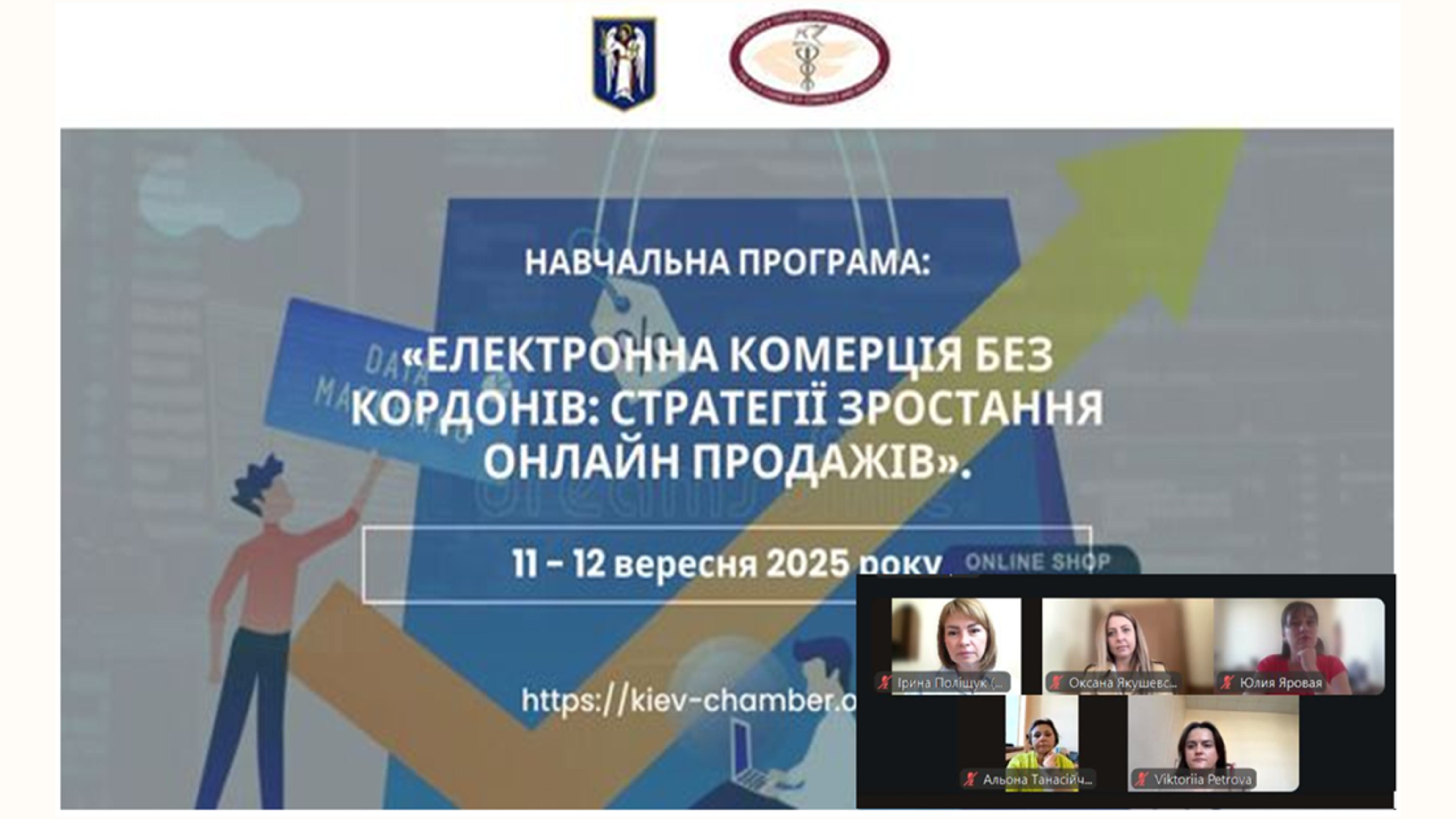 11-12 вересня 2025 року науково-педагогічні працівники кафедри маркетингу та реклами разом зі здобувачами вищої освіти освітніх програм «Маркетинг», «Логістика», «Реклама і зв'язки з громадськістю» ВТЕІ ДТЕУ долучилися до дводенної навчальної програми «Електронна комерція без кордонів: стратегії зростання онлайн-продажів». Захід, організований Київською торгово-промисловою палатою, в рамках Міської цільової програми сприяння розвитку промисловості та підприємництва, включає чотири важливі напрями: штучний інтелект, кібербезпека, інвестпроєкти та електронна комерція.