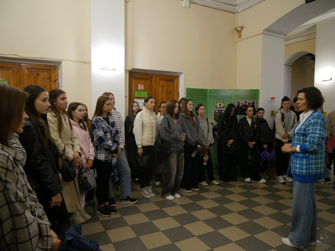 В інституті вже стало традицією до дня народження нашого видатного земляка вшановувати його пам'ять. З цієї нагоди адміністрація інституту, першокурсники та співробітники бібліотеки взяли участь у покладанні квітів до барельєфу М. Коцюбинського, що знаходиться на фасаді навчального корпусу №1 ВТЕІ ДТЕУ. Зі вступним словом виступила Алла Смотрицька, завідувач відділу обслуговування користувачів бібліотеки ВТЕІ.