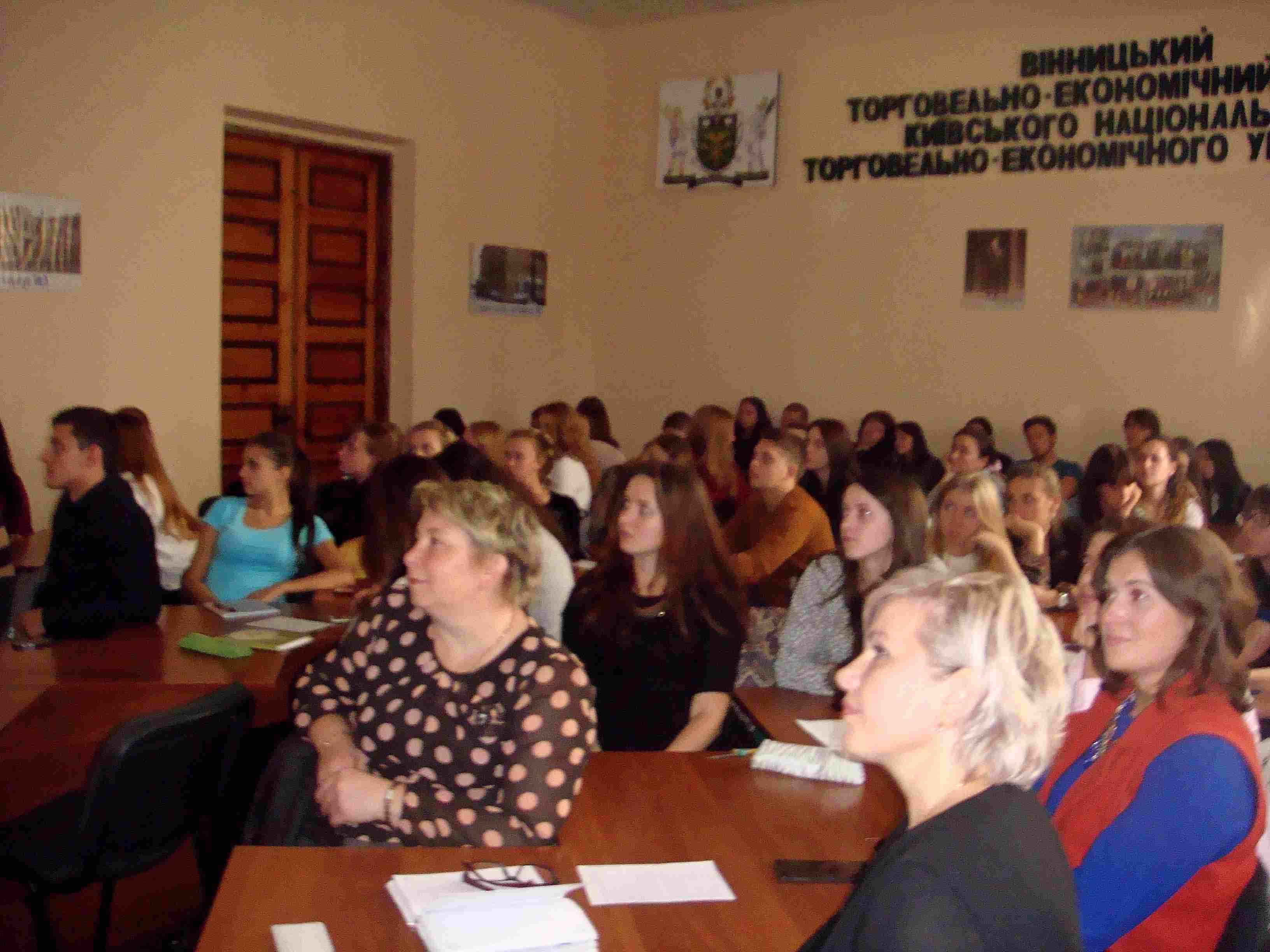 28 вересня 2015 р. кафедра сучасних європейських мов провела День гостинності з нагоди Міжнародного дня перекладача. ВТЕІ КНТЕУ пишається тим, що має 10-річній досвід підготовки перекладачів, які працюють в економічних, соціальних, виконавчих, управлінських секторах міста та області. Цього року відповідно до отриманої ліцензії МОН України було здійснено перший набір магістрів спеціальності «Переклад». Отож, кафедрі було чим поділитися з гостями. У колі запрошених були студенти та викладачі Вінницького гуманітарно-педагогічного коледжу на чолі з завідувачем відділенням іноземних мов Пиндик О.Г., учні випускових класів ЗОШ м. Вінниці, а також здобувачі вищої освіти спеціальності «Філологія (переклад)».
