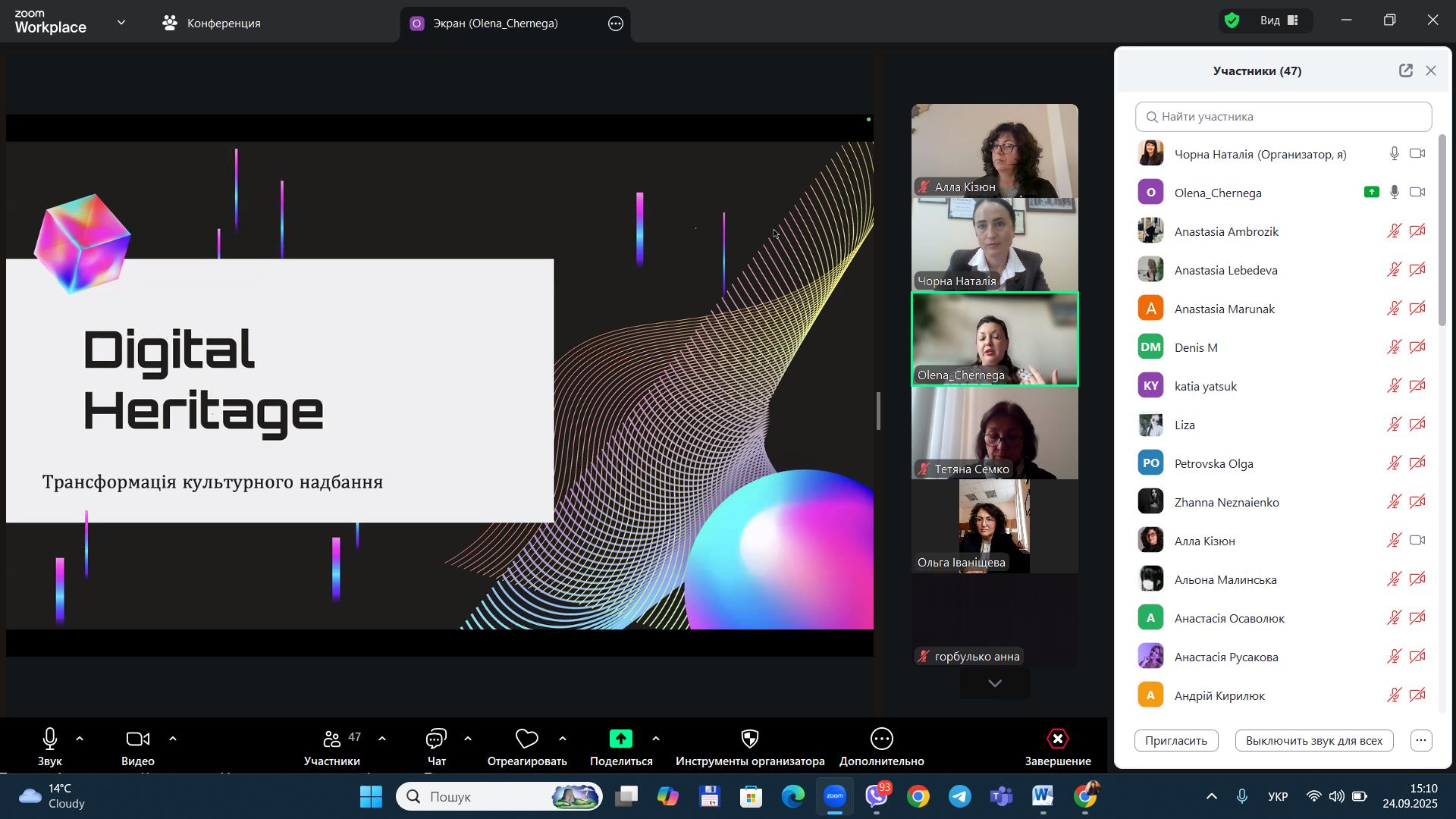 Колектив кафедри туризму та готельно-ресторанної справи висловлює пані Олені слова вдячності за ґрунтовну лекцію на актуальну тематику, професійність та глибоке занурення в проблему цифровізації культурної спадщини.