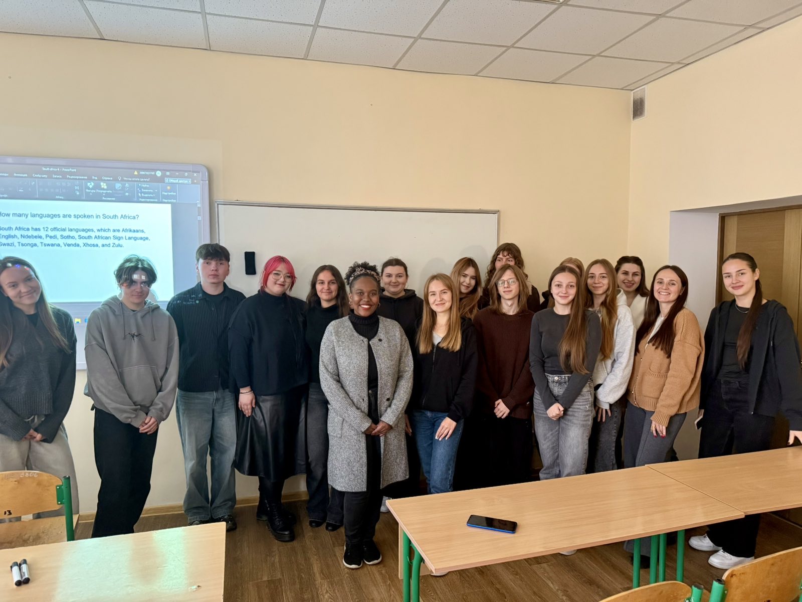 Студенти-філологи познайомилися з носієм мови, студенткою Вінницького національного медичного університету ім. М.І. Пирогова - Lally. Лелі познайомила присутніх із традиціями, звичаями та туристичними місцями її батьківщини – Південної Африки. Студенти мали змогу доторкнутися до традиційних африканських прикрас з бісеру. Філологи могли не лише вдосконалити свою вимову, але й поринути в автентичне мовне середовище, подолати мовний бар'єр і підготуватися до майбутньої професії.