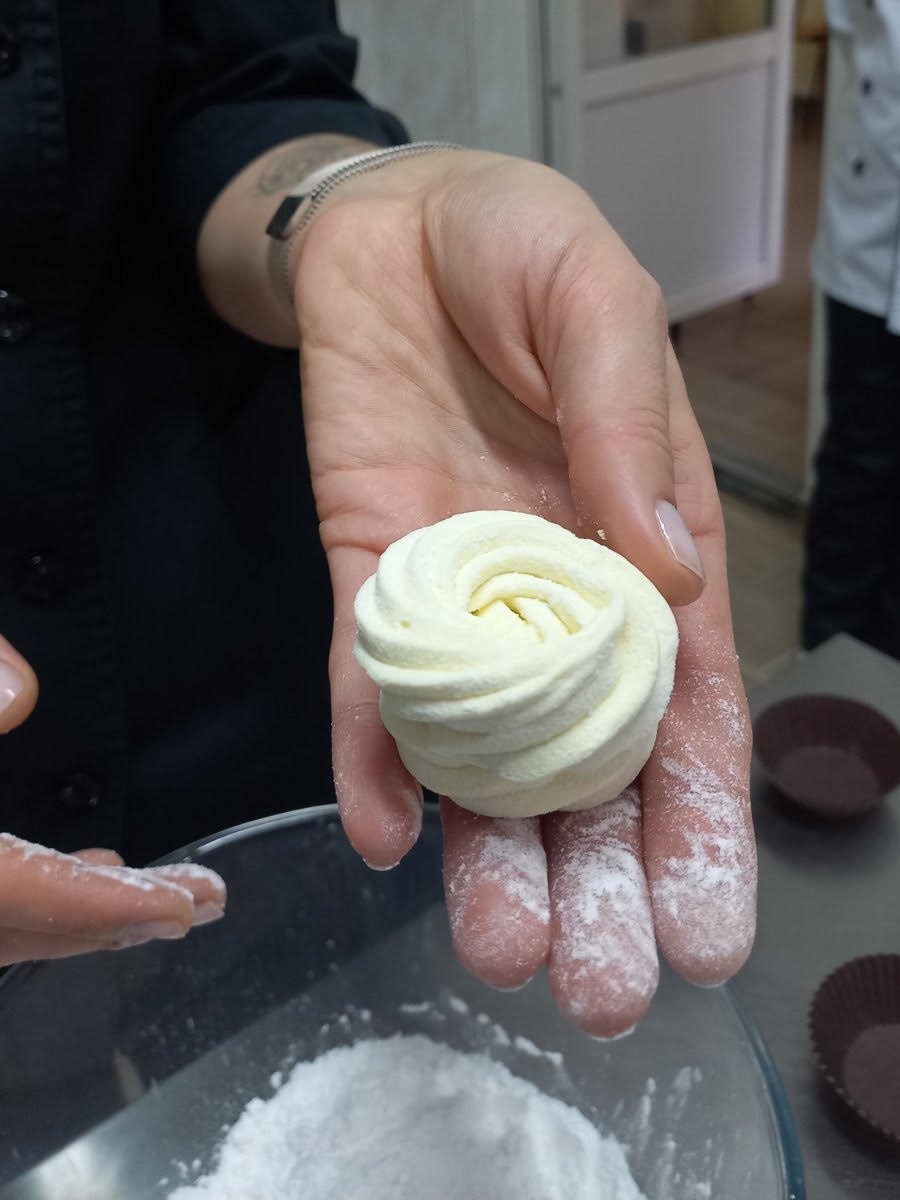 Учасники заходу ознайомилися з технологічними етапами приготування натурального зефіру (яблучного з натуральним барвником та полунично-яблучного), особливостями вибору сировини, а також секретами отримання ніжної консистенції та рівномірної структури продукту.