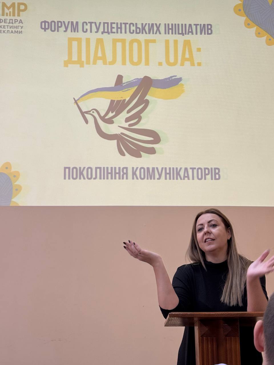 Модерувала форум студентських ініціатив доцент кафедри маркетингу та реклами Оксана Якушевська. Здобувачі вищої освіти представили власні комунікаційні концепції, які демонструють сучасне бачення популяризації української культури, бренду країни та сили медіа у формуванні національної ідентичності. Теми студентських виступів: - Vesy. Крок української культури світом;