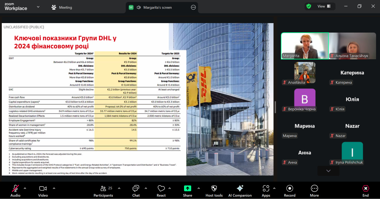 21 жовтня 2025 року відбулося засідання Бізнес-школи ВТЕІ ДТЕУ за участю Маргарити Вандерейкен - працівниці відділу European Customer Operations Group DHL Express Europe.