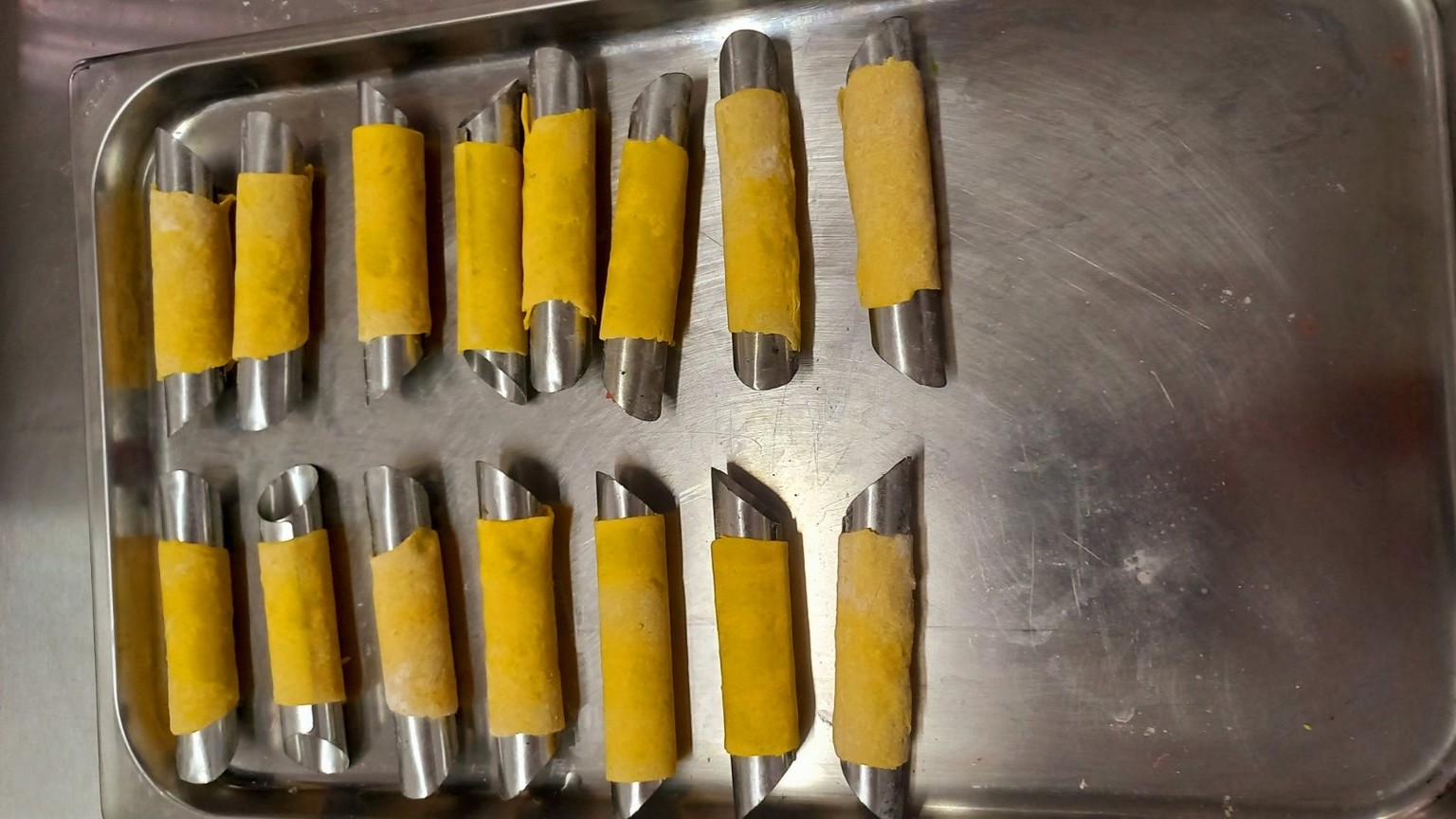 Шеф-кухар поділився професійним секретом приготування тіста для канолі – від замішування до правильного розкачування та формування. Здобувачі дізналися, як досягти потрібної еластичності тіста, а також зберегти структуру виробу після випікання.