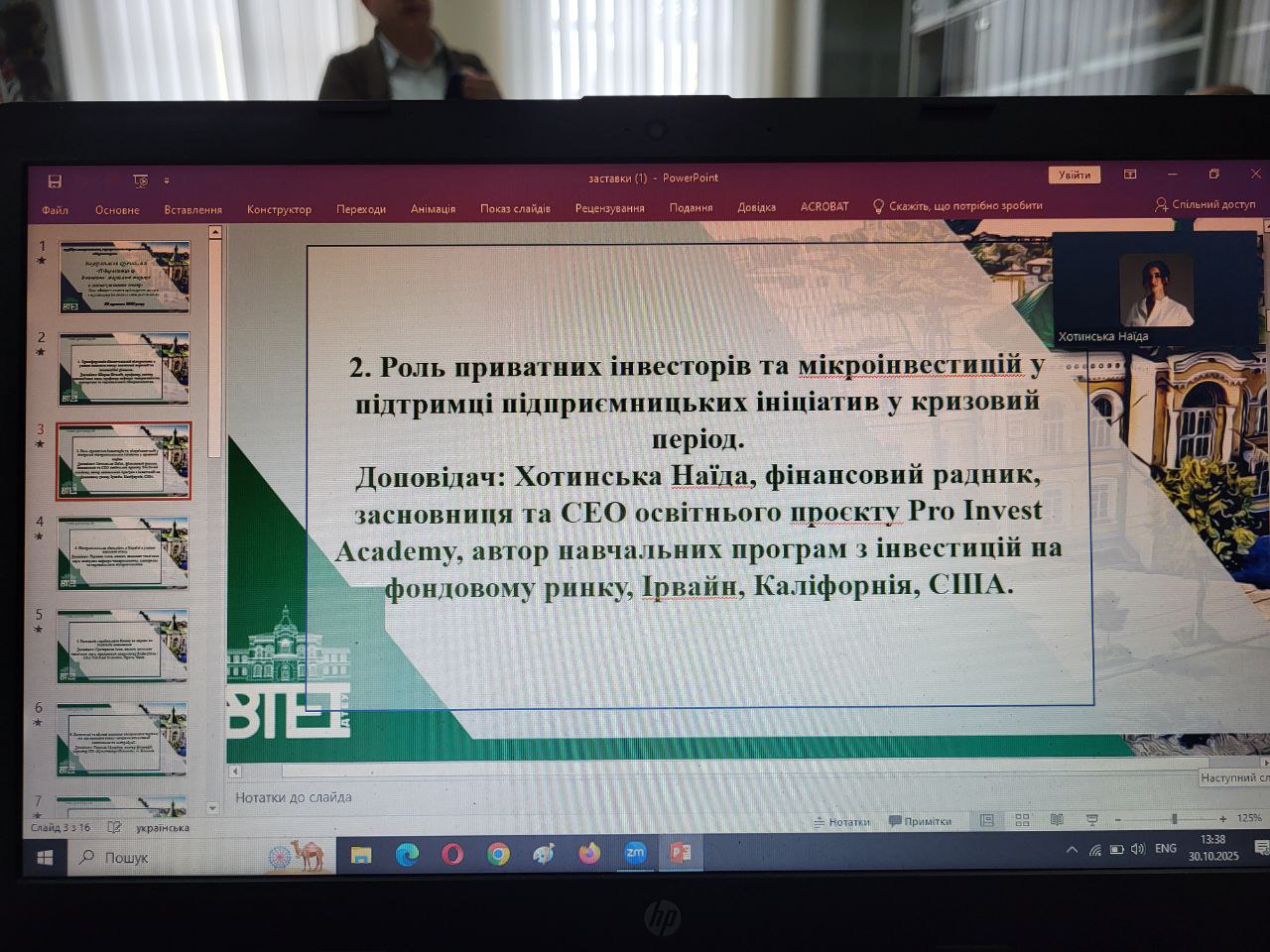 Доповідач: Хотинська Наїда, фінансовий радник, засновниця та CEO освітнього проєкту Pro Invest Academy, автор навчальних програм з інвестицій на фондовому ринку, Ірвайн, Каліфорнія, США.