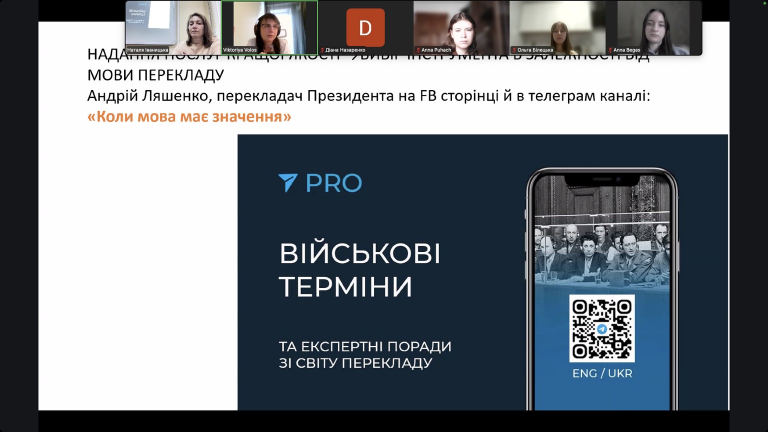 Особливу увагу було приділено стандартам ISO 17100 і ISO 18587, принципам постредагування машинного перекладу (MTPE) та ролі перекладача в умовах цифрової трансформації галузі.
