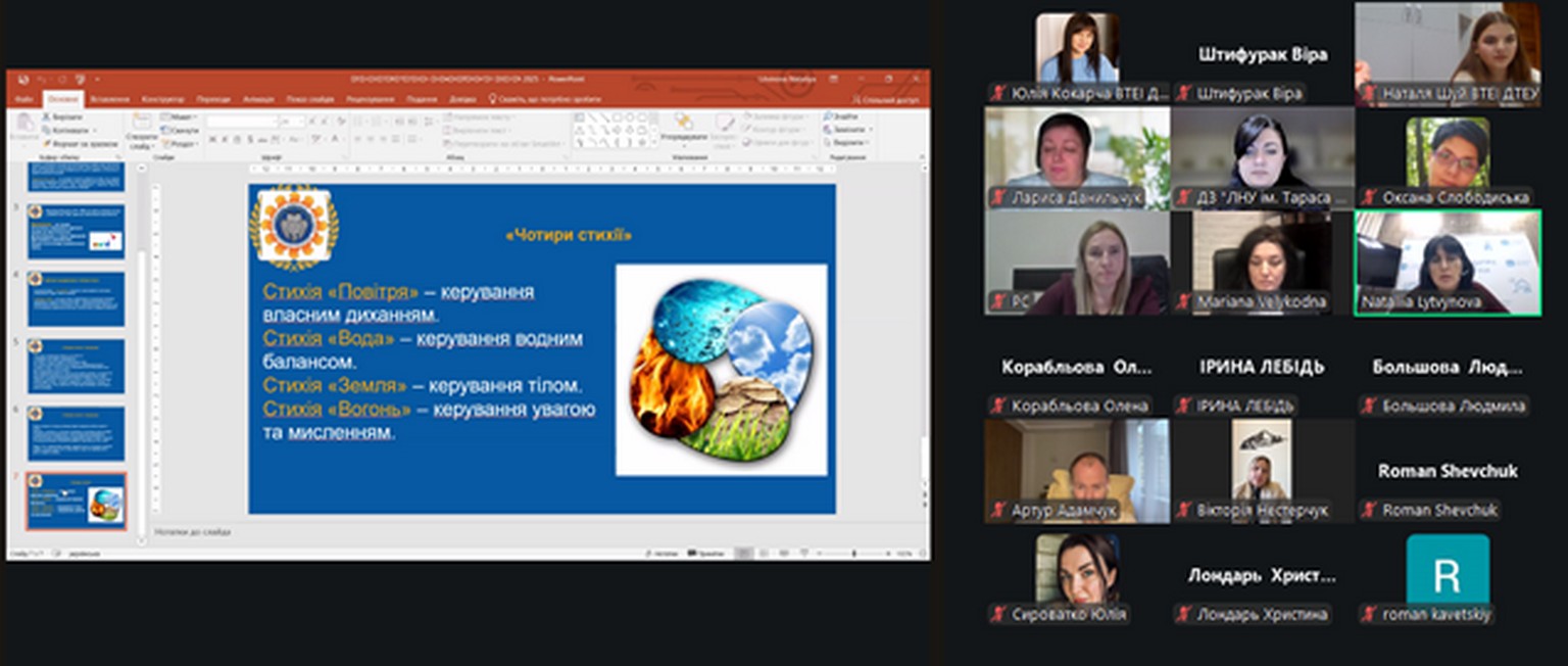 Під час круглого столу обговорювалися питання безпечного формування здоров'язбережувального освітнього простору, психологічного благополуччя фахівців соціономічних професій, розвитку душевної стійкості та саморегуляції.