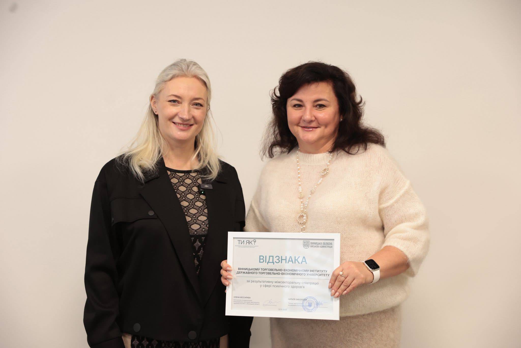 ВТЕІ ДТЕУ вручено відзнаку за результативну між секторальну співпрацю у сфері психічного здоровʼя