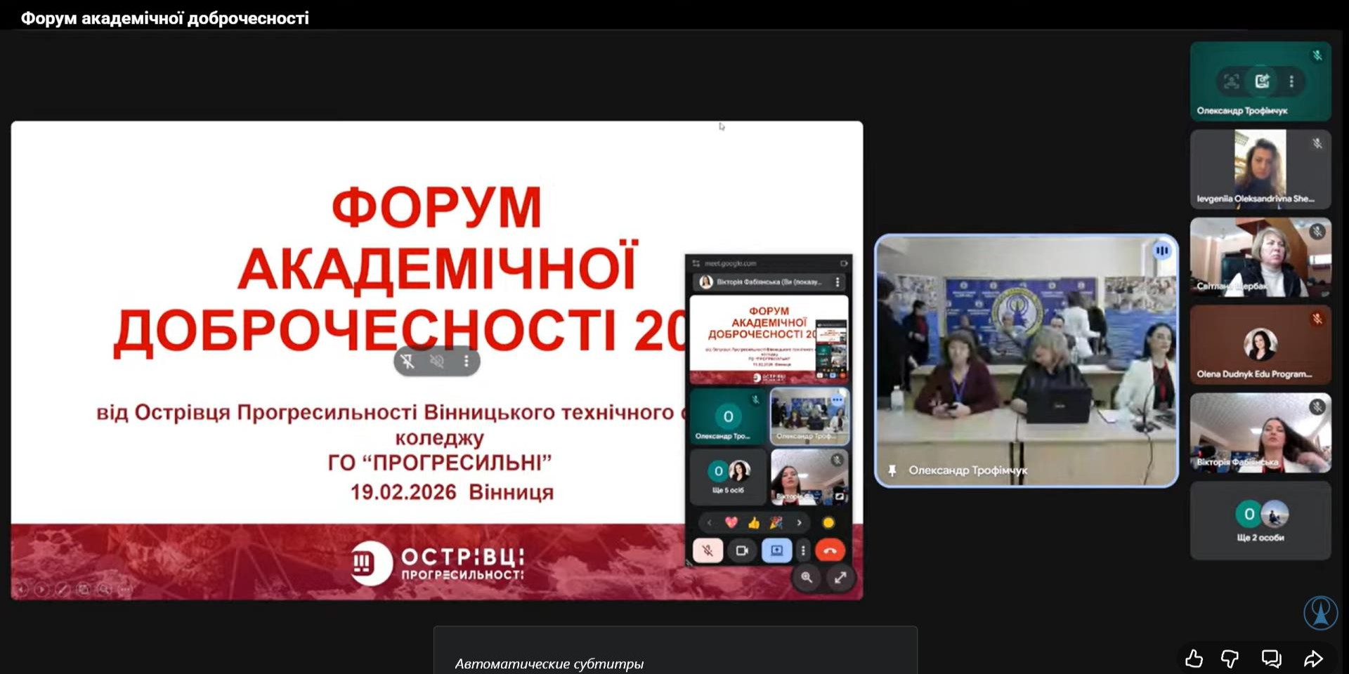 19 лютого 2026 року науково-педагогічні працівники кафедри туризму та готельно-ресторанної справи взяли участь у Форумі академічної доброчесності, ініціатором проведення якого виступила ГО «Прогресильні», а сам захід відбувся на базі Вінницького технічного фахового коледжу.