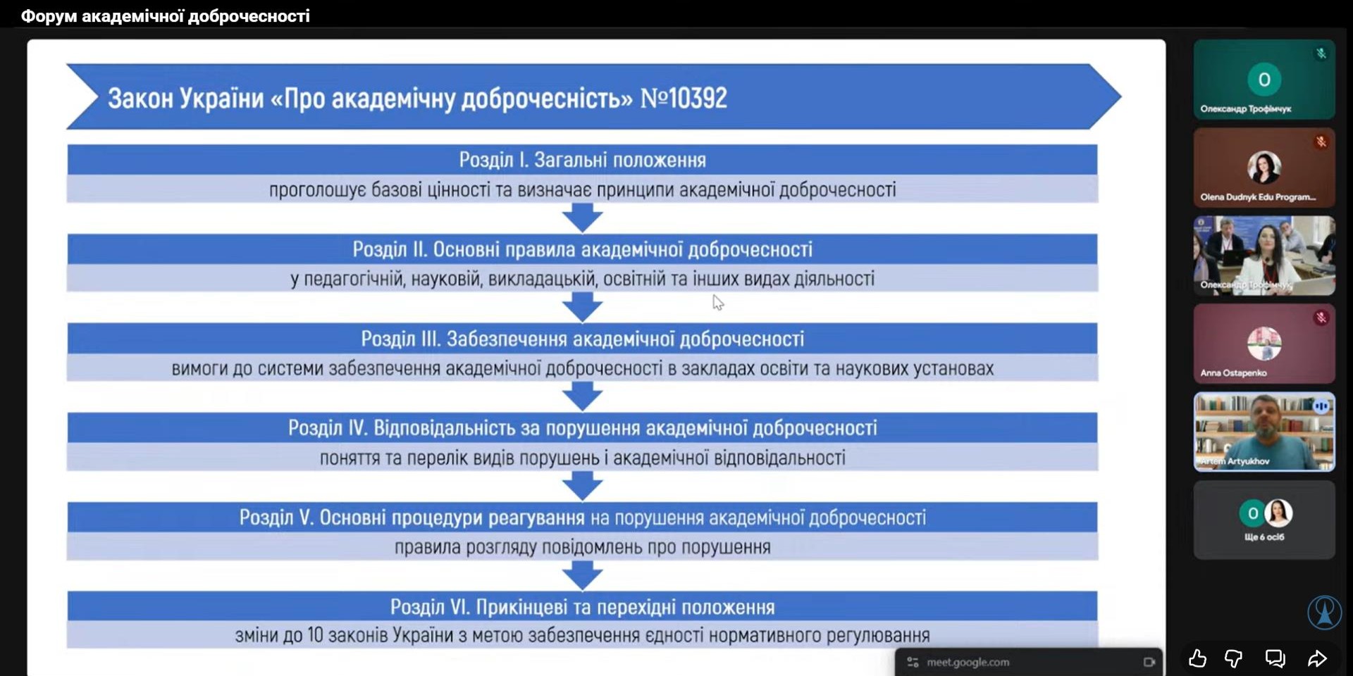 На форумі зазнав обговорення Закон України «Про академічну доброчесність», а також такі важливі та актуальні на тепер теми, як академічна доброчесність у добу штучного інтелекту, практики впровадження академічної доброчесності в освітній процес, доброчесні практики, принципи та інструменти вдосконалення систем академічної доброчесності.